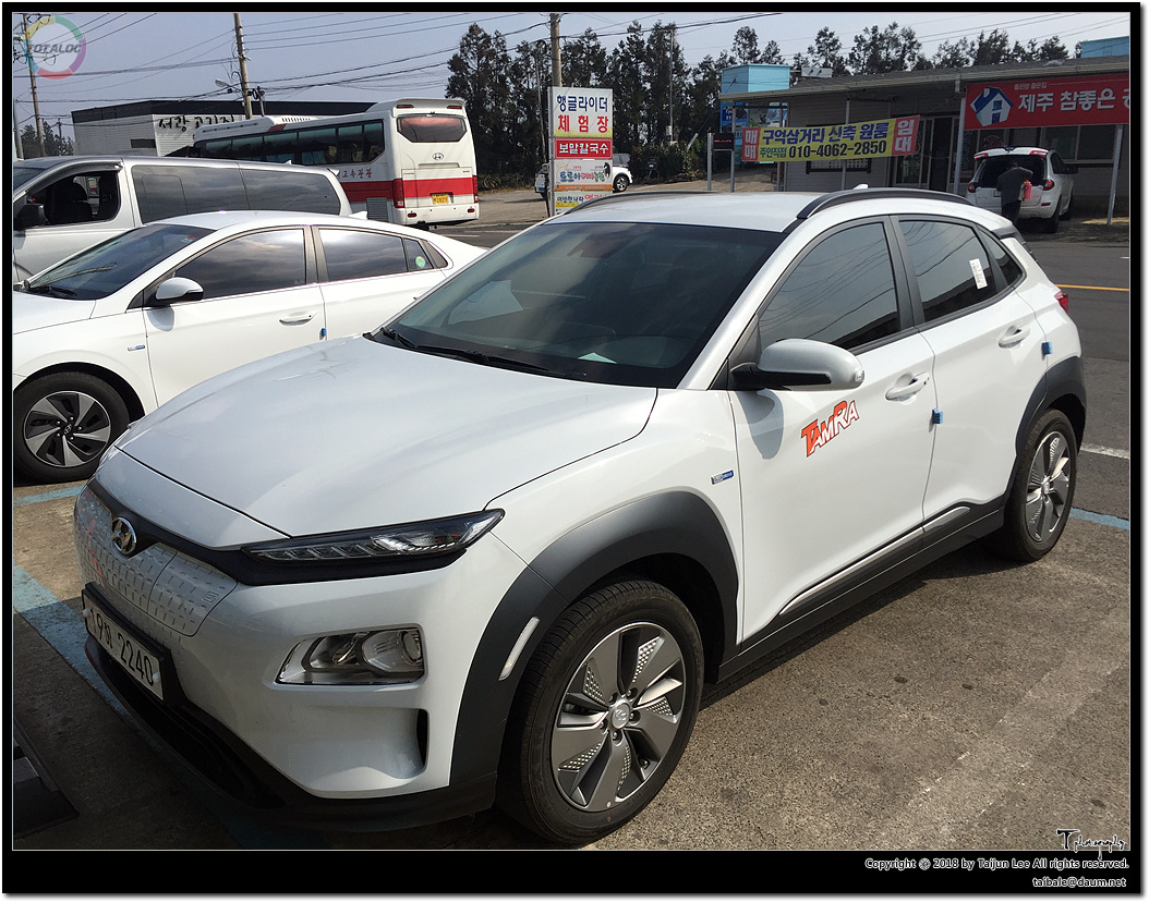 기존의 2번은 모두 같은 렌트카 업체를 이용했는데, 이번 여행은 탐라렌트카를 이용해봤습니다. 여러가지 이유가 있었어요. 기존에 이용하던 업체에서 아이오닉 EV의 가격을 3천원 인상했는데, 탐라렌트카에서 코나 EV 혹은 니로 EV를 렌트하는 가격이랑 불과 2천원 차이더라구요. 하지만 아이오닉과 코나의 완충 시 주행거리는 약 200km와 약 400km로 2배 차이가 나죠. 게다가 이전 업체에서는 충전카드를 일 3천원에 이용하든지, 사용하지 않는 대신 5천 원을 추가 결제해야 했는데, 탐라렌트카에서는 추가금액이 없을 뿐더러 충전카드 역시 자율선택. 충전카드 일 3천원 본전 뽑을 수 있는 사람 별로 없습니다.