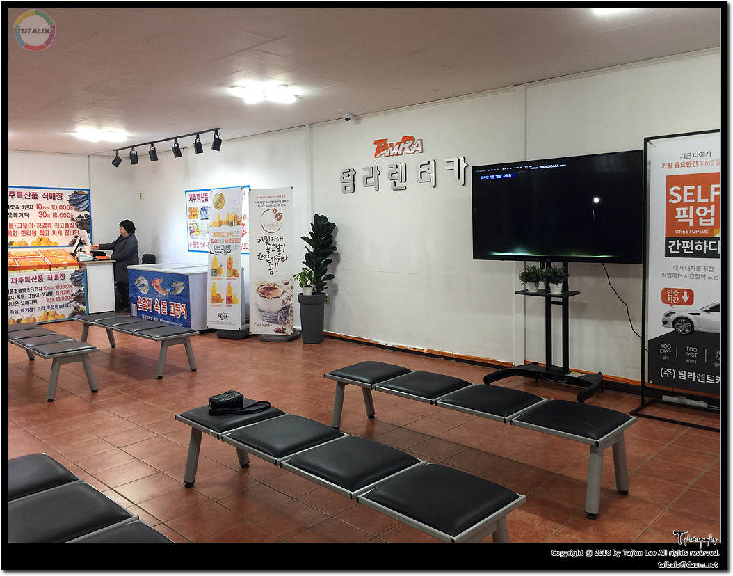 그 이외에도 몇 가지 요인이 더 있었습니다. 렌트카를 이용하려면 공항 주차장에서 셔틀버스를 타고 이동을 해야 하잖아요? 탐라텐트카도 셔틀버스를 운영하긴 하지만, 공항에서 나와서 5분 정도 걸으면 도착합니다. 사거리였나 오거리였나.. 거기서 횡단보도 한번 건너면 바로 탐라렌트카. 티켓몬스터에서 결제하고 이용했는데, 어지간하면 안좋은 평가도 종종 눈에 띌텐데, 양심적이다 친절하다 등과 같은 칭찬이 대다수라 필터링한 거 아닌가 의심이 될 정도..ㅎㅎ 여하튼 그래서 이용하기로 결정했죠. 이용하실 때 꼼꼼히 따져보실 건, 대부분 일 단위로 렌트해주는 것처럼 설명을 해둬서 헷갈리는 부분인데, 이용조건을 잘 살펴보면 대부분 24시간 기준입니다. 저 같은 경우는 월요일 오후 7시 인수 / 목요일 오후 7시 반납이었는데요. 일로 계산하면 4일이지만, 시간으로 계산하면 72시간이죠. 그래서 저 같은 경우는 3일을 선택해서 렌트했습니다. 렌트하실 때 이런 부분 꼼꼼히 살펴보시길.