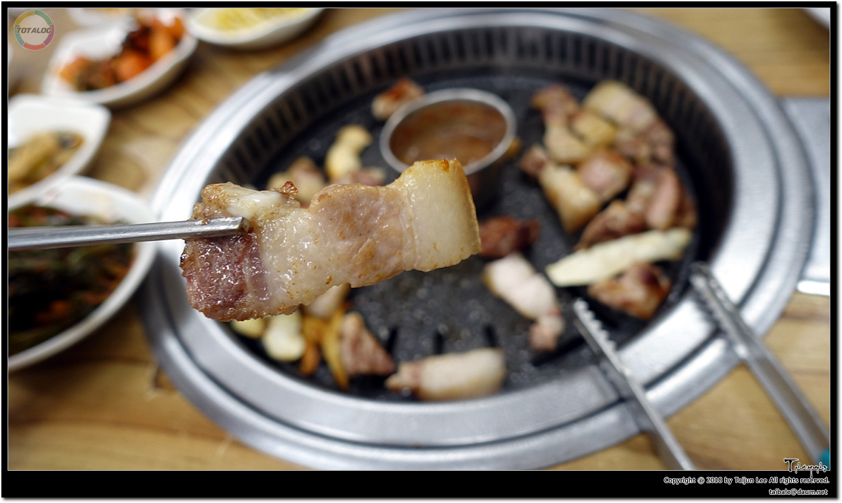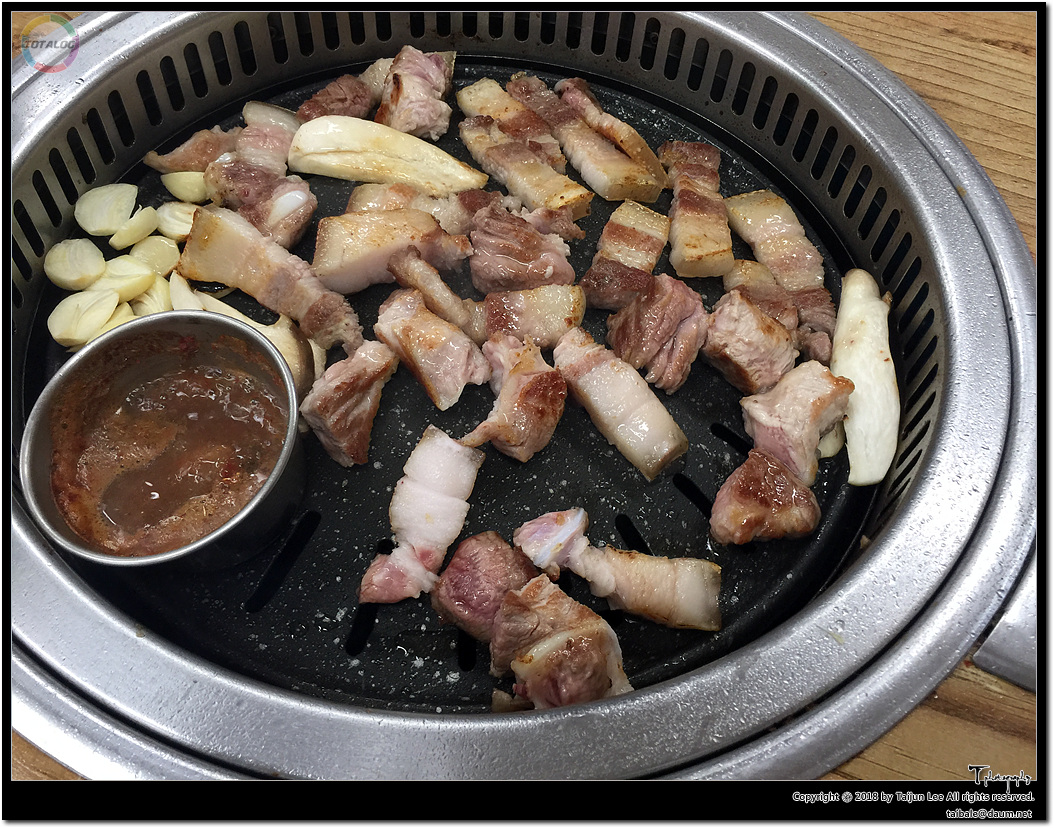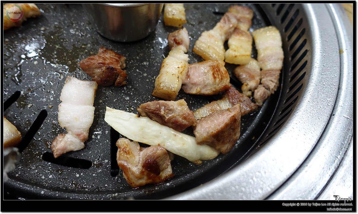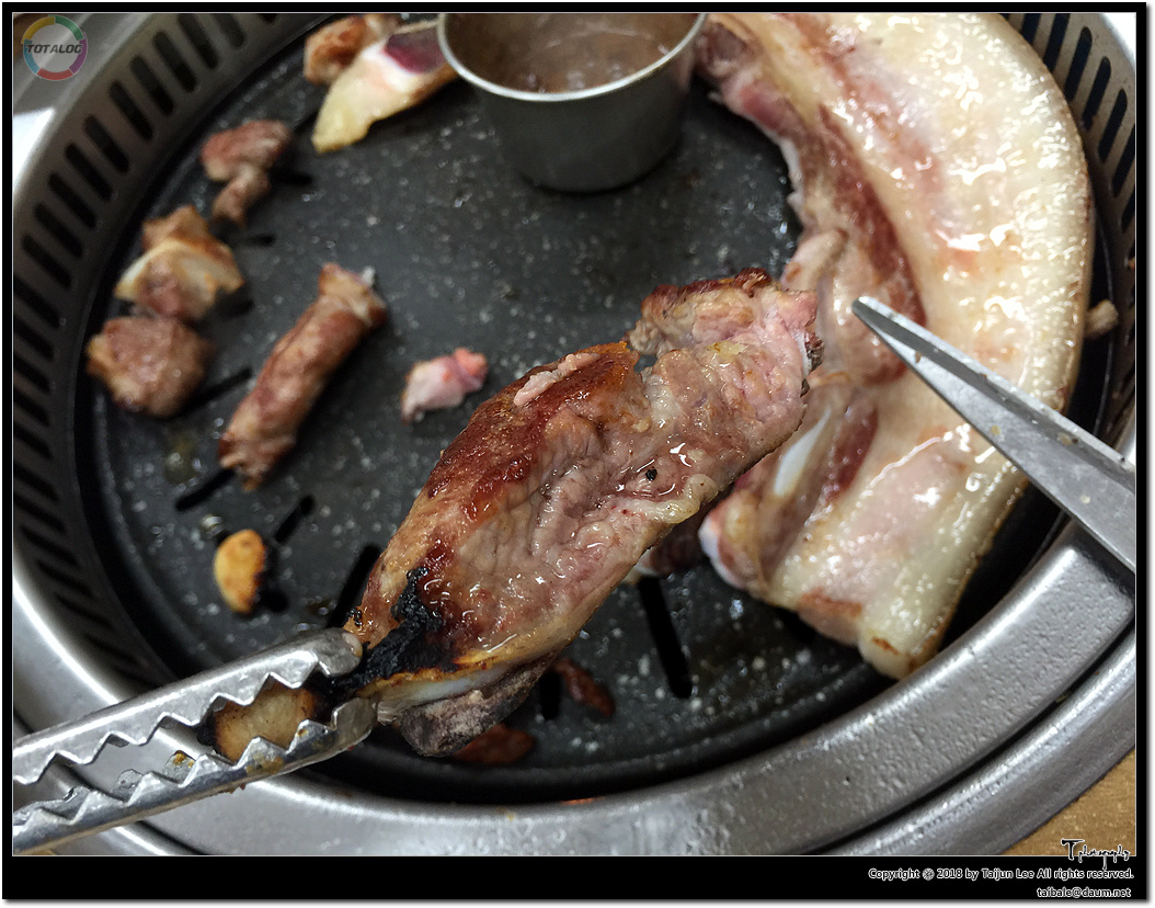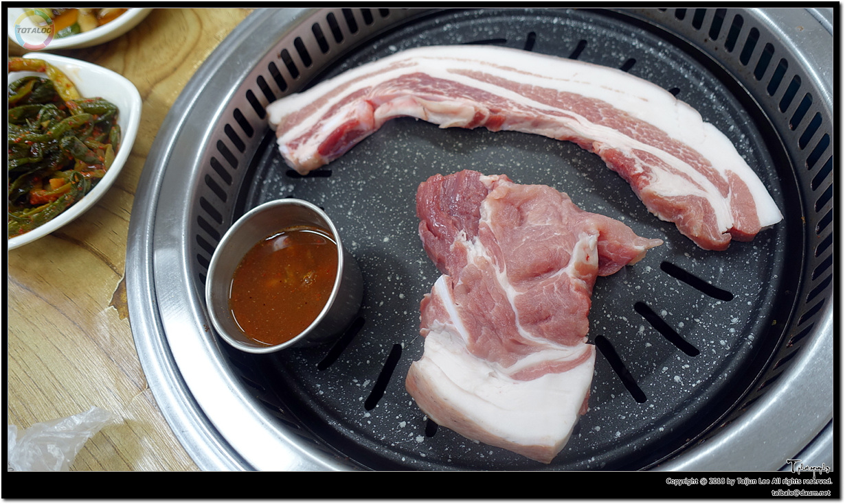 삼겹살과 목살 한 덩이씩 불판에 올려봅니다.