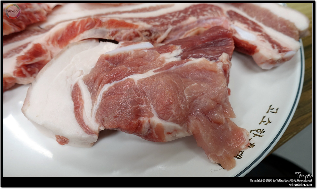 고기 한번 슥 훑어보고 갈까요? 위에서부터 목살, 황제갈비살, 삼겹살입니다.