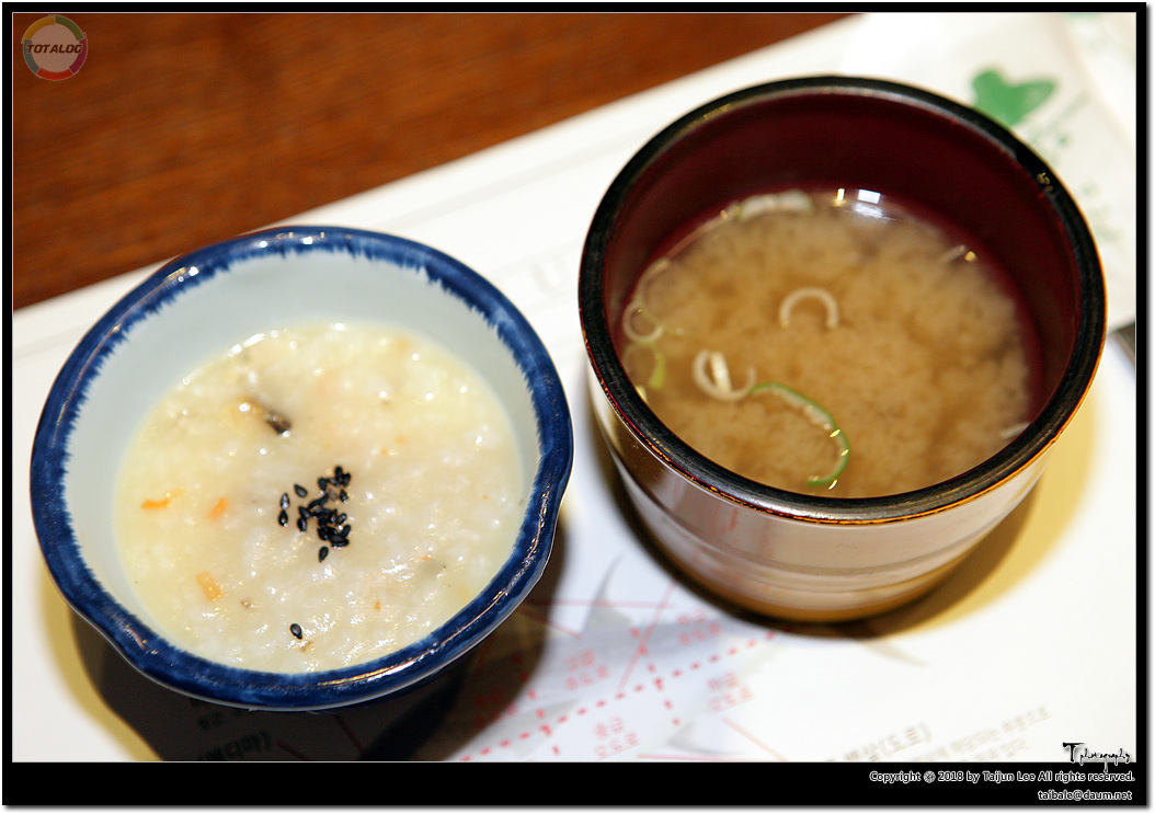 죽과 미소시루도 나옵니다.