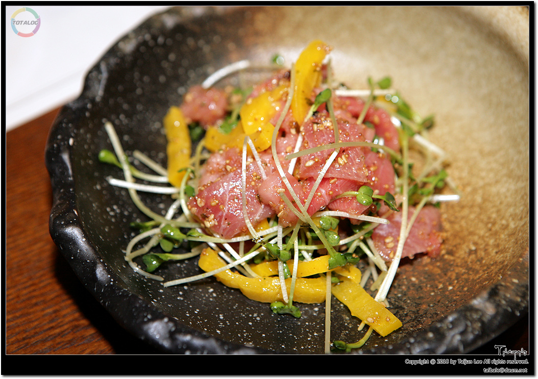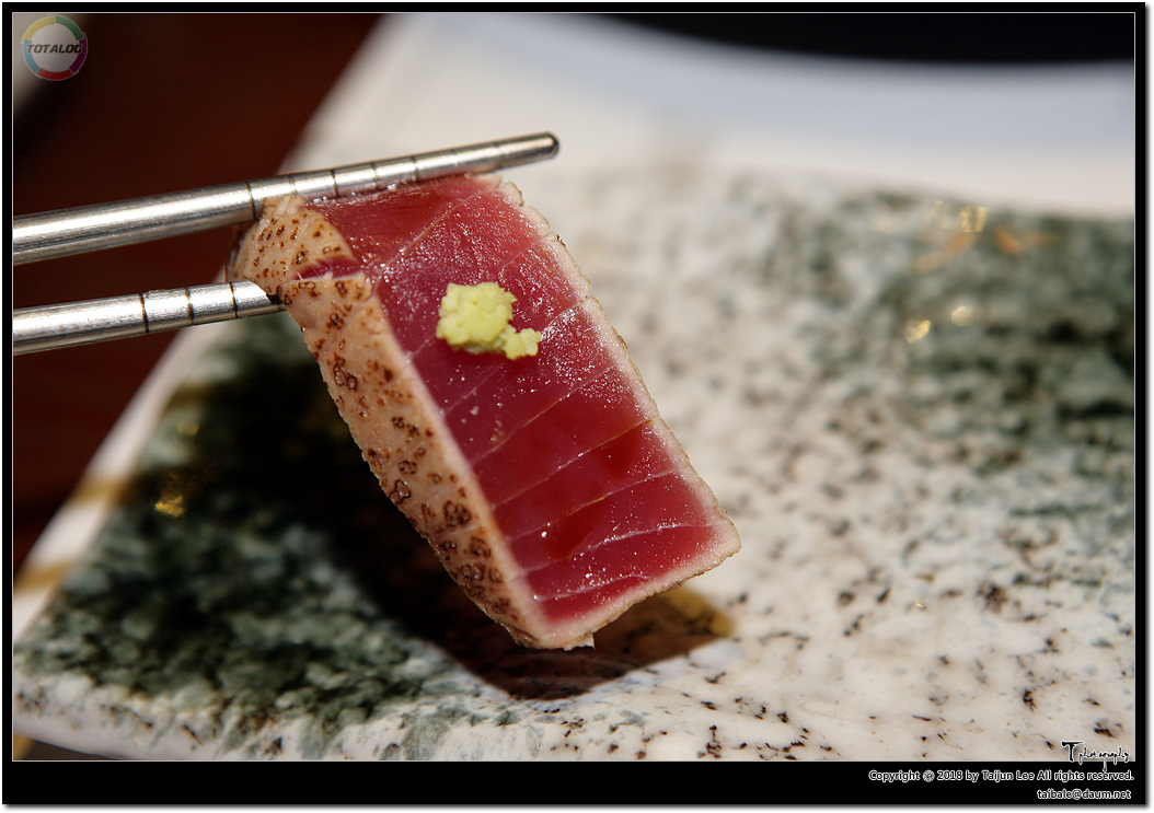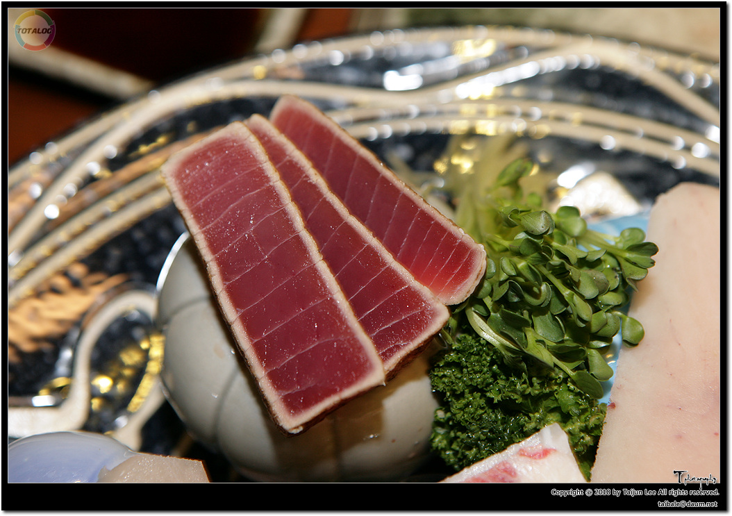 스테이크로 치면 레어? 구운 참치와 사시미를 동시에 맛 볼 수 있죠.