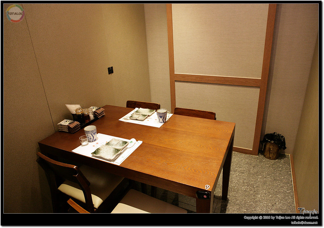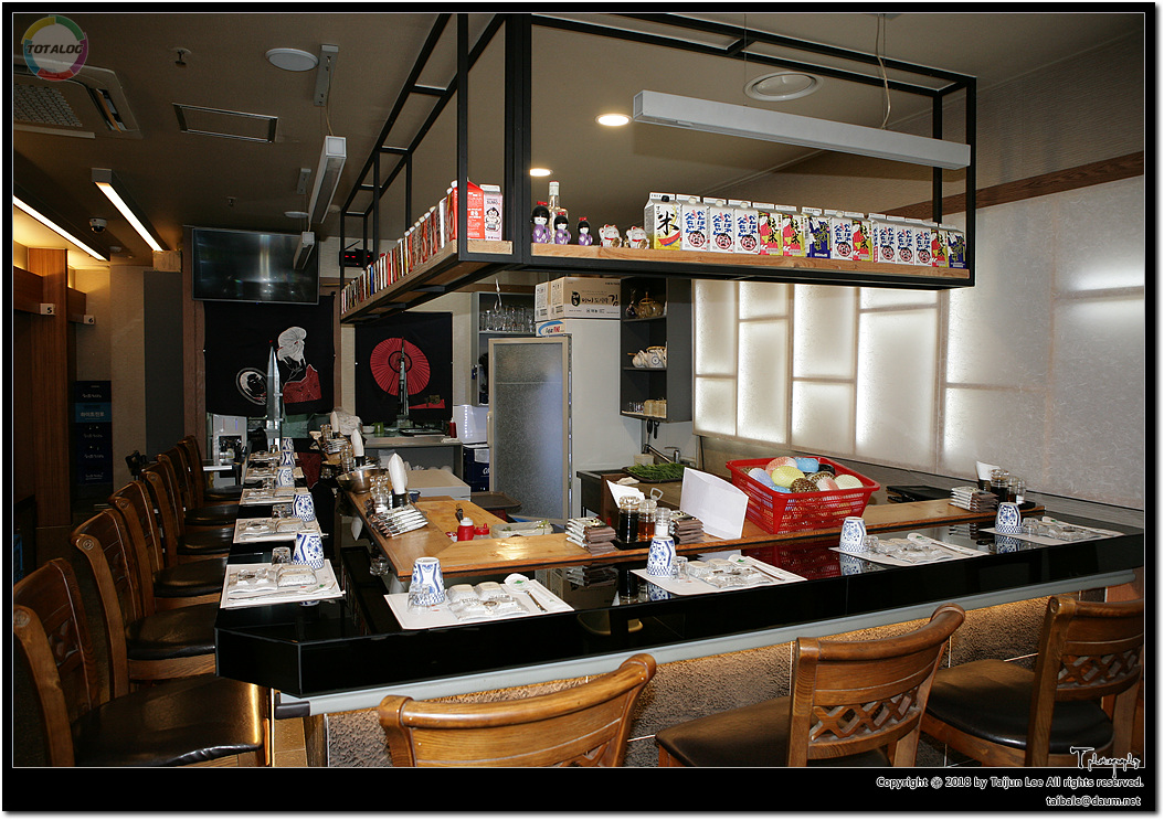 원일참치의 내부. 전체 좌석이 카운터석과 룸으로 나뉘어 있습니다.