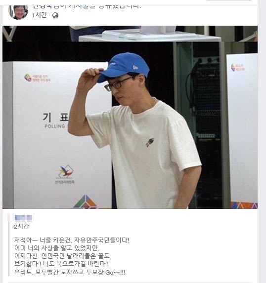 4·13 총선 당시 인천광역시 연수구을 선거구에 출마하여 당선된 민경욱. 그런데 그 당시에도 논란이 있었습니다. 출마 선언 당시 유승민 전 원내대표의 연설문을 베낀 것. 더군다나 당시 유승민은 비박이고, 민경욱은 친박인데다 전직 언론인 출신이었기 때문에 양심도 없다는 비난이 쏟아졌죠. 6·13 지방선거 당시에는 유재석이 사전투표를 하러 갈 때 파란 모자를 썼다는 이유만으로 "재석아- 너를 키운건 자유민주국민들이다! 이미 너의 사상을 알고 있었지만, 이제 다신 인민국민 날라리들은 꼴도 보기 싫다! 너도 북으로 가길 바란다! 우리도, 모두 빨간 모자쓰고 투보장(투표장) GO~!"라는 엄청난 무리수를 날리기도 했습니다. 유재석이 파란색을 당의 색깔로 쓰는 더불어민주당을 지지하여 파란 모자를 썼다고 생각한 것인데... 세상에 진짜...