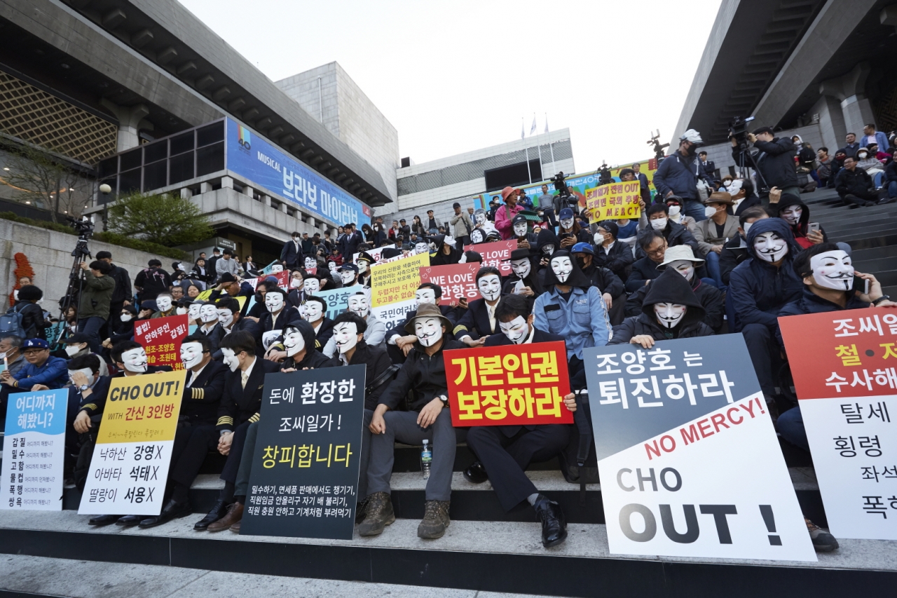 조양호 회장은 2014년 땅콩회항 당시 "기계가 다 도와 주니 조종사들은 실제 하는 일이 없다, 엄살부리지 말라"며 대한항공 소속 부기장의 페이스북에 조종사를 비하하는 뉘앙스의 댓글을 달았으며. 제주도에서 돌아오던 조종사에게 자신의 개인 물품을 챙기라는 교신을 30분동안 공용 주파수를 통해 이어갔다고 합니다. 또한 조현민의 갑질 사건이 터지자 자신의 집무실에 소리가 새어나가지 않도록 방음공사를 한 사실도 밝혀졌죠. 약사 면허를 대여받아 인하대병원 인근에 위치한 약국을 불법 운영해 18년 동안 건강보험공단을 상대로 1,000억 원이 넘는 부당이득을 취한 혐의로 검찰의 수사를 받고 있으며, 회삿돈을 횡령·배임해 자녀들에게 위법하게 증여한 정황 및 프랑스 파리에 부동산을 차명으로 은닉해 비자금을 형성했다는 의심도 받고 있습니다.