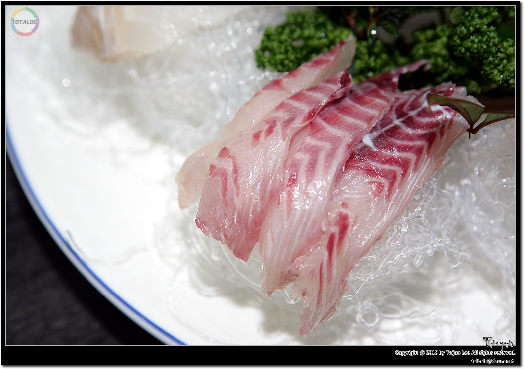 자, A코스의 하이라이트인 모듬회가 나왔습니다. 생선이 두 종류군요.
