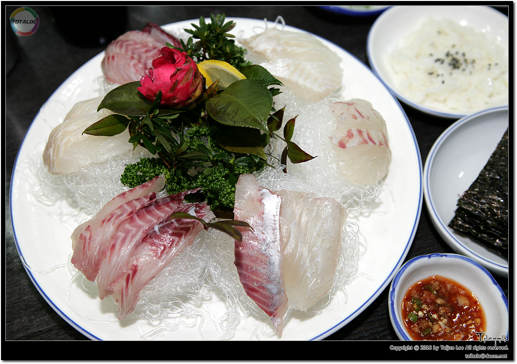 그리고 하얀 건 도다리회. 흡사 광어회라고 생각하실 분들도 계실텐데요.