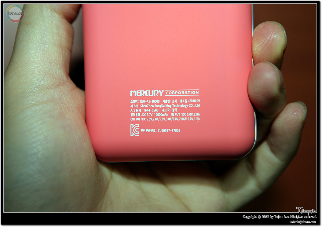 제품 뒷면에는 Made in CHINA에 제조 ShenZhen RongKaiXing Technology, 판매 머큐리 등 제품정보가 적혀있습니다.. 모델명은 TEM-A1-10000로군요.