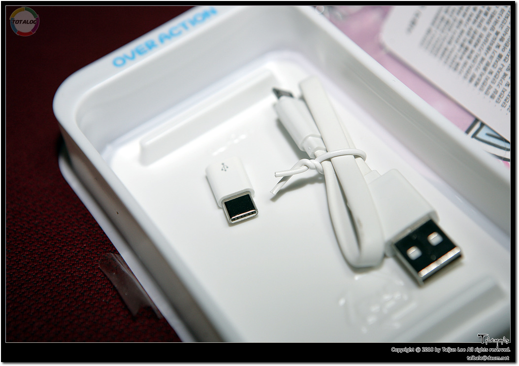 박스를 열어보면 배터리 막 대하지 말라는 준엄한 경고 권고 사항이 적힌 종이와 함께, C타입 젠더, 마이크로 5핀 케이블이 들어있습니다.
