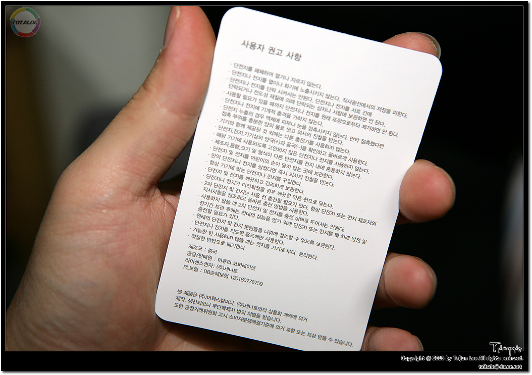 뒷면을 보면 제조월을 비롯한 제품정보가 또 적혀 있습니다. KC안전확인을 비롯해서 DB손해보험 가입 제품이라 생산물 배상책임보험 최대 5억원이라고 하니.. 터지면 바로 신고 ㄱㄱ..... 인쇄된 글씨들이 제품 하단부와 수평이 안맞고 미세하게 기울어져 있는 듯한 느낌적인 느낌....