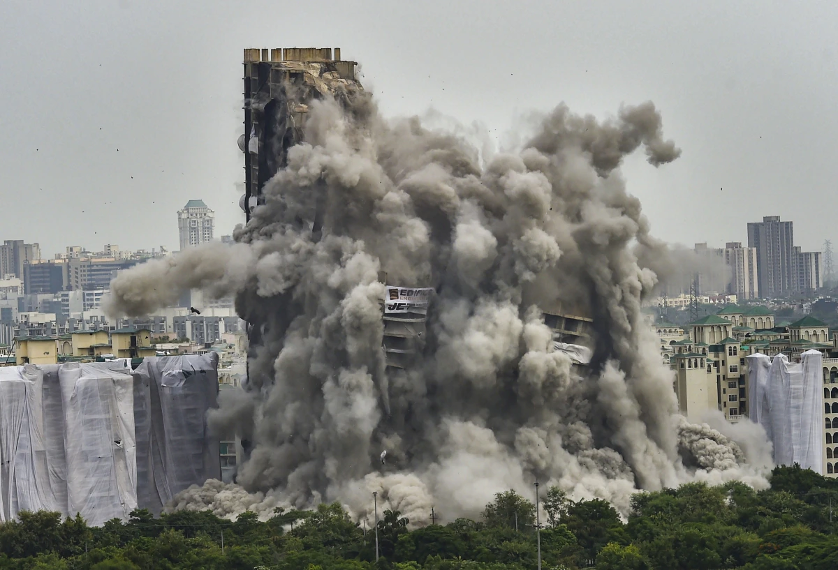 하지만 이 쌍둥이 빌딩인 Apex와 Ceyane 건설을 위해 정원을 제거하는 내용의 계획 수정이 아파트 소유주들의 동의 없이 이루어졌는데, 이후 Emerald Court 소유주 모임 측은 쌍둥이 빌딩이 불법건축물이라고 주장하며 소송을 제기했고, 2014년 노이다가 속해있는 우타르프라데시(Uttar Pradesh, UP)가 관할지역인 Allahabad High Court(알라하바드 고등법원)가 해당 건물에 대한 철거를 4개월 이내에 자비로 시행하라고 판결했고, 2021년 8월, Supreme Court(대법원) 역시 철거 판결을 유지했습니다. 최소 거리 요건(건물간의 안전 거리 및 차량 이동공간이 충분히 확보되지 않았다는 점, 화재 안전 규범 위반)을 위반했다는 이유였는데요. 법원은 이 건물이 아파트 건축법을 위반했고, 개별 아파트 소유자의 동의없이 불법적으로 건축되었음이 인정된다고 밝히면서, 노이다 당국과 Supertech사 간의 담합 행위로 건설된 것이라고 꼬집었죠.