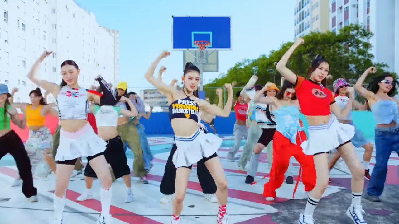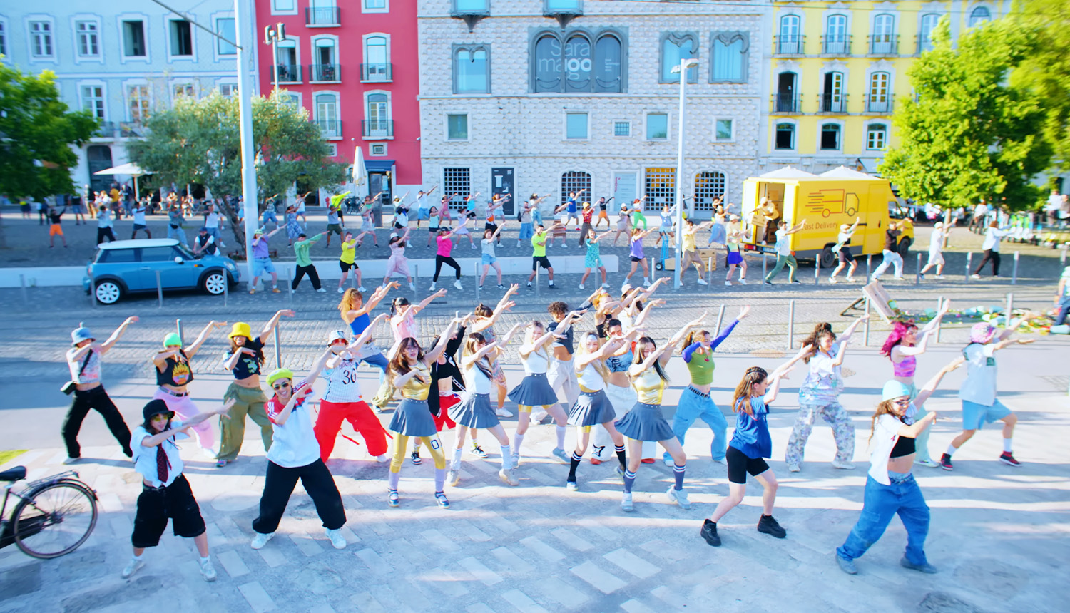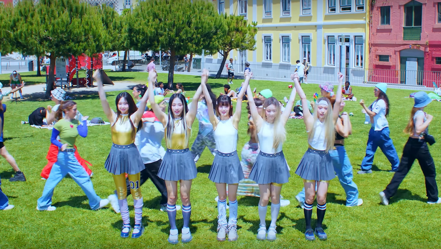 뉴진스가 'Super Shy'를 위해 준비한 특급 무기는 바로 플래시몹입니다. 뉴진스는 'Super Shy'의 뮤직비디오에서 포르투갈의 광장, 공원, 길거리, 시장 등 다양한 고간에서 불특정 다수와 대형 군무를 펼치는 듯한 모습을 연출했는데요. 2003년 맨하튼에서 최초의 플래시몹이 열린 이후 10년 넘게 유행했던 플래시몹이라는 소재는 뉴진스의 차별점인 레트로 콘셉트와 정확하게 맞아 떨어지고, 또한 이 콘셉트를 다시 한 번 확장해냈습니다.