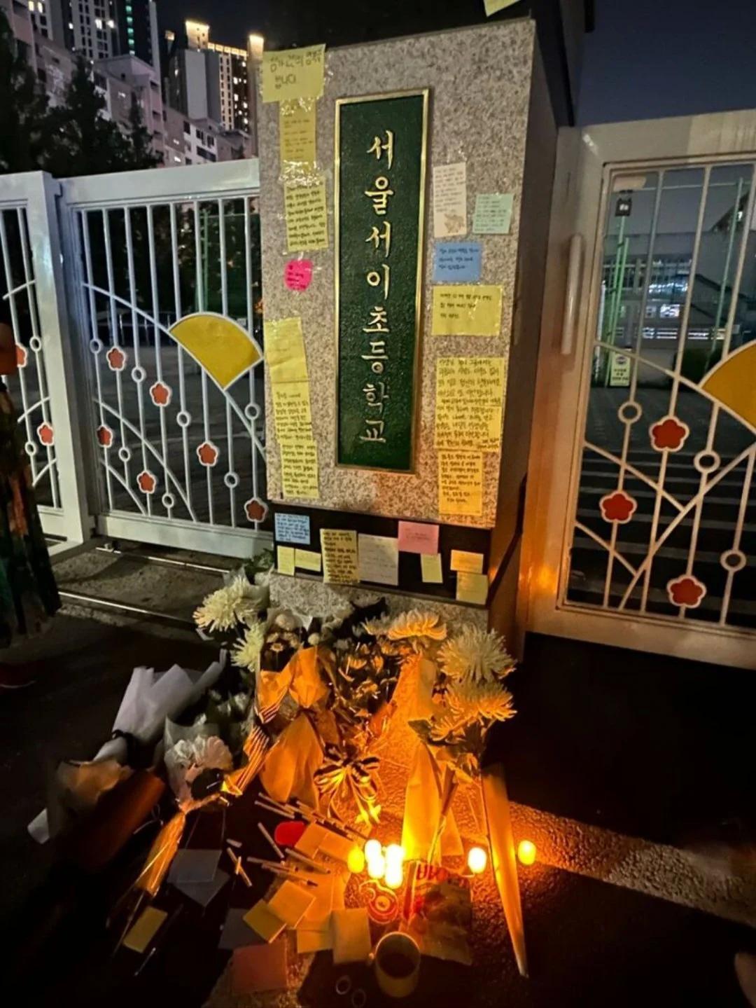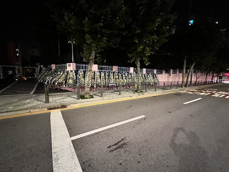 블라인드에 글을 올린 한 교사에 따르면, "날이 밝는대로 전국의 교사들이 보낸 근조 화환들이 서이초등학교 정문 앞에 줄줄이 도착할 예정인데, 화환 업체는 근조 화환들을 설치하려고, 그리고 학교 측은 설치를 못하게 막으려고 옥신각신 할 예정이다. 정문 앞에 설치된 추모 공간도 학생들 안전 사고나 정신 건강 핑계로 싹 치울 듯 하다"며 "누구든 근조 화환이랑 추모공간 치우는 장면 좀 찍어달라. 슬픔에 잠긴 동료 교사들에게 정문나가서 치우라고 시키거나 112에 신고해 경찰들이 출동해서 치울지도 모르겠다. 누군가는 기록해주길 바란다"고 합니다. 스쿨존에서 어린아이가 교통사고 나서 죽은 자리에도 근조화환과 국화꽃을 놓으며 추모합니다. 교사가 죽으면 추모를 하면 안되는 걸까요? '애들 교육상'이라는 핑계로 추모를 막는 행패는 없길 바랍니다.