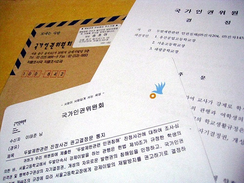 그리고 국가인권위원회는 '서울고등학교에서의 두발단속 시 강제이발 관행은 헌법 제10조가 규정한 학생의 인격권 및 행복추구권상의 자기결정권, 개성의 자유로운 발현권의 침해임을 인정하고, 서울고등학교장에게 강제이발의 재발방지를 권고하기로 결정한다'는 최종결정을 내렸으며, 교육인적자원부장관 및 각 시·도 교육감에 "학생의 의사에 반한 강제이발은 인권 침해이므로 재발 방지를 위한 적극적 조치를 강구할 것"이라고 권고했습니다. 또한 공정택 당시 서울시 교육감은 일선 학교에 "현재의 두발 관련 규정에 대해 학생들이 개정안을 만들게 하고 학교운영위원회의 심의를 거쳐 결정하라"는 지시를 내렸죠.