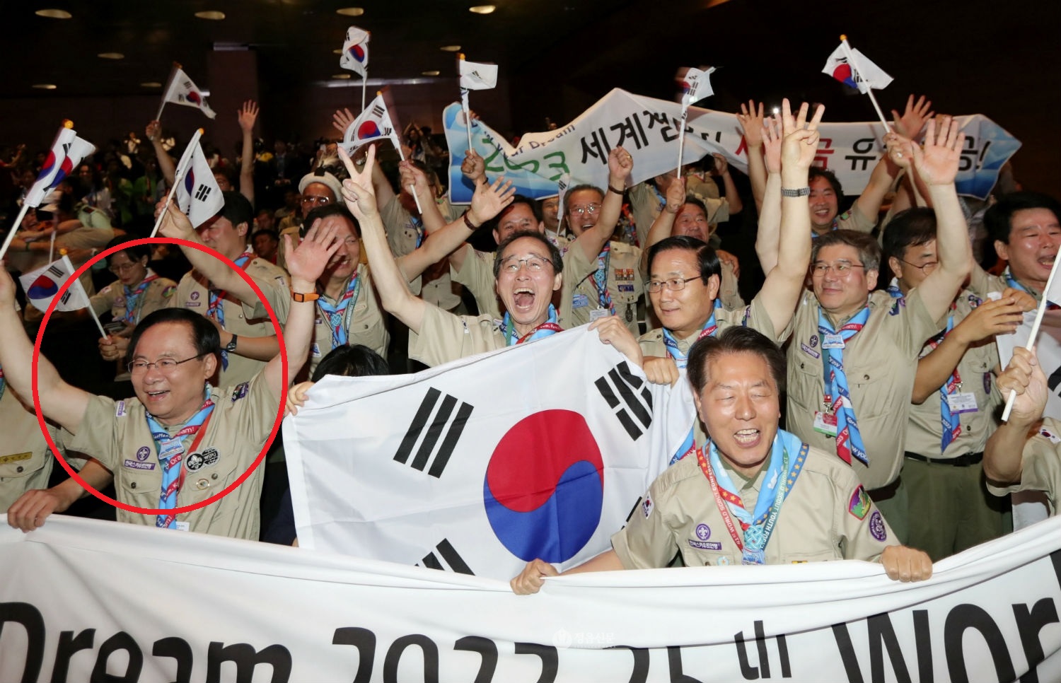 좀 더 살펴볼까요? 새만금 세계잼버리 유치 1년 전인 2016년에 '2023년 세계잼버리대회 새만금 유치지원 촉구 결의안'을 대표발의한 것이 세월호 참사 당시 해양수산부 장관이었던 이주영 전 의원. 2017년 제41차 세계스카우트 총회에서 새만금의 세계잼버리 유치가 확정된 후인 2018년에는 '2023 새만금 세계잼버리지원특별법(이하 특별법)을 대표발의하기도 했죠. 경남 창원 마산합포가 지역구인 이주영 의원이 왜 이리도 열심히 전라북도 새만금의 세계잼버리 유치 관련 법안을 발의했을까요? 그가 바로 세계스카우트 의원연맹 부총재이자 2023 세계잼버리대회 한국유치 위원장이었기 때문입니다. 당연히 그의 소속은 국민의힘의 전신인 자유한국당이구요.