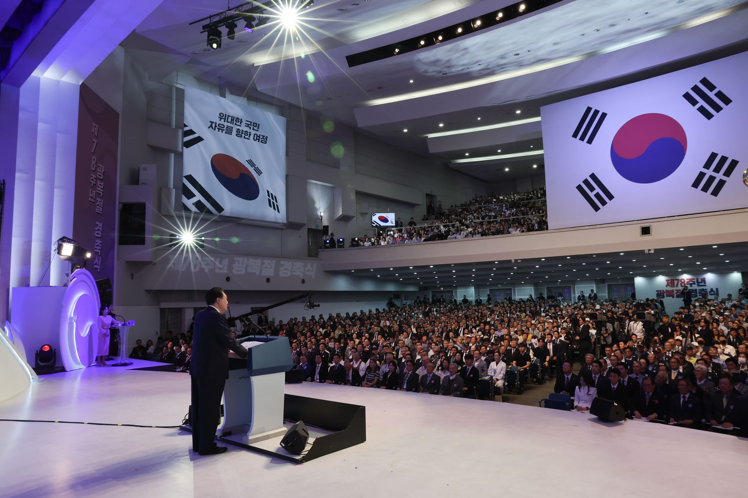 우리는 자신의 당대에 국권을 회복할 가능성이 희박한 암흑의 시기에도 국민이 주인이 되는 나라, 자유민주주의 국가의 꿈을 포기하지 않았습니다. 자유를 찾아 출발한 대한민국의 여정은 지금 우리에게 자유와 독립뿐만 아니라 평화와 번영을 가져다주었습니다. 우리는 이제 세계시민의 자유, 평화, 번영에 책임있게 기여해야 하는 역사적 숙명을 기꺼이 받아들여야 합니다. 이를 위해 우리가 오래전 자유를 찾아 출발한 여정은 앞으로도 멈추지 않고 계속되어야 할 것입니다.