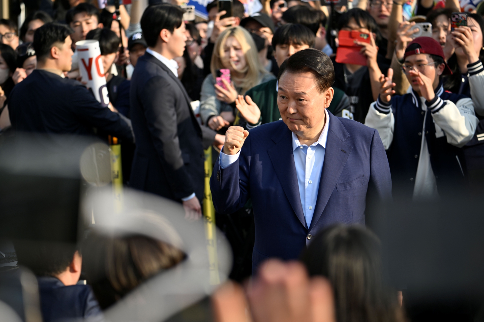 재밌는 것은 한 지지자가 "탄핵 무효"라는 구호를 외치자 곧바로 메가폰으로부터 "대통령님이 나오시면 그런 구호는 말고 'Yoon Again' 같은 응원하는 구호만 외칠게요"라는 지적이 날라온 것. 그리고 남색 정장에 넥타이를 매지 않은 모습으로 관저 정문 앞에 나타난 윤석열 전 대통령은 '과잠'(대학교 학과 잠바)을 입은 청년 지지자들을 향해 손을 흔들고 포옹하고 악수를 했는데, 알고 보니 이것이 전국 40여 개 대학생 연대인 '자유대학' 소속 대학생들과 대통령실이 기획한 것으로 전해졌습니다.