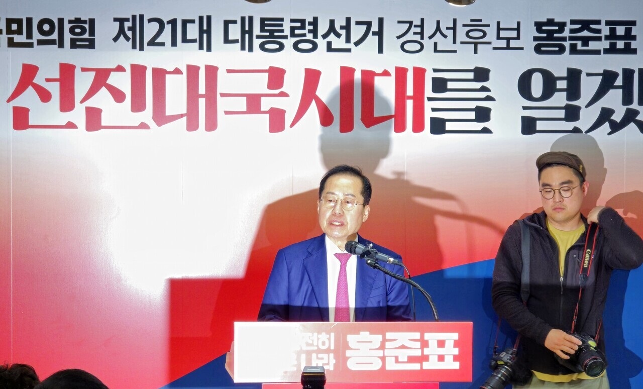 홍준표 전 시장은 "이번 대선은 정권교체냐, 정권 연장이냐의 문제가 아니라 바로 홍준표 정권이냐, 이재명 정권이냐의 양자택일 선거"라면서 "이재명 정권의 종착역은 표퓰리즘과 국민 매수의 나라 남미 최빈국 베네수엘라"라고 주장했습니다. 또한 "비양심과 패륜으로 얼룩진 나라, 청년이 짊어져야 할 빚투성이 나라, 반칙과 불공정이 판치는 나라, 바로 이것이 이재명 정권의 미래"라면서 "자유와 기회와 꿈이 넘치는 나라, 원칙과 공정이 바로 선 나라, 다음 세대에게 물려줄 자랑스러운 나라, 바로 홍준표 정권이 열어갈 세상"이라고 말했죠.