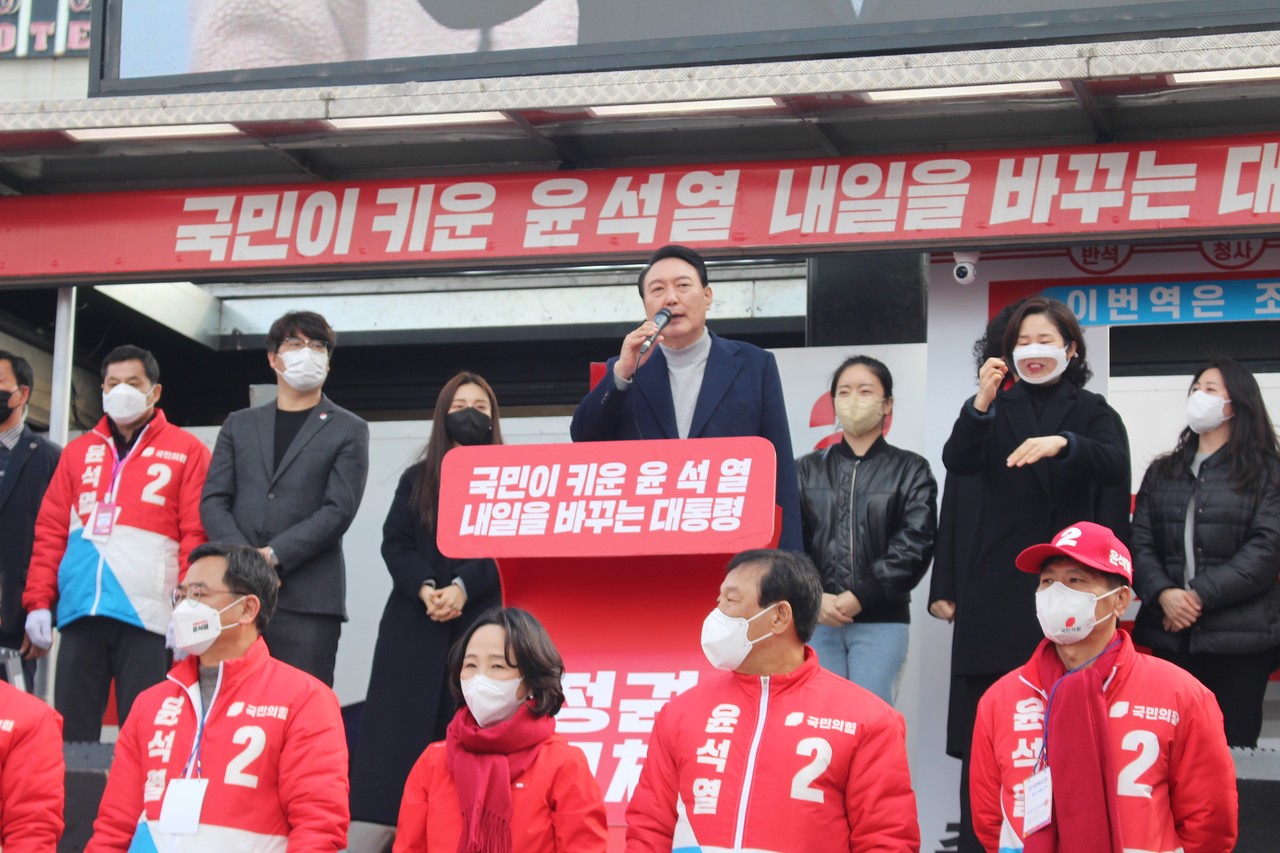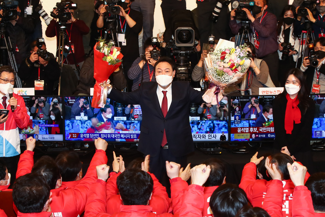 문재인 정부에서 검찰총장직을 맡았던 윤석열은 조국 사태를 기점으로 문재인 정부와 갈등을 빚었고, 2020년 말 헌정 사상 최초로 검찰총장직에서 정직을 당하기도 했죠. 그리고 검찰개혁방안을 놓고 문재인 정부의 검수완박(검찰 수사권 완전 박탈)에 대해 강하게 비판을 한 뒤 결국 2021년 3월 검찰총장직에서 사퇴합니다. 문재인 정부와 첨예하게 부딪히는 사이 보수진영 대선 주자로서의 지지율이 폭등했고, 6월 29일 제20대 대통령 선거 출마를 공식적으로 선언한 데 이어 7월 30일 국민의힘에 입당하면서 끝내 대통령에 당선되기에 이르렀죠.