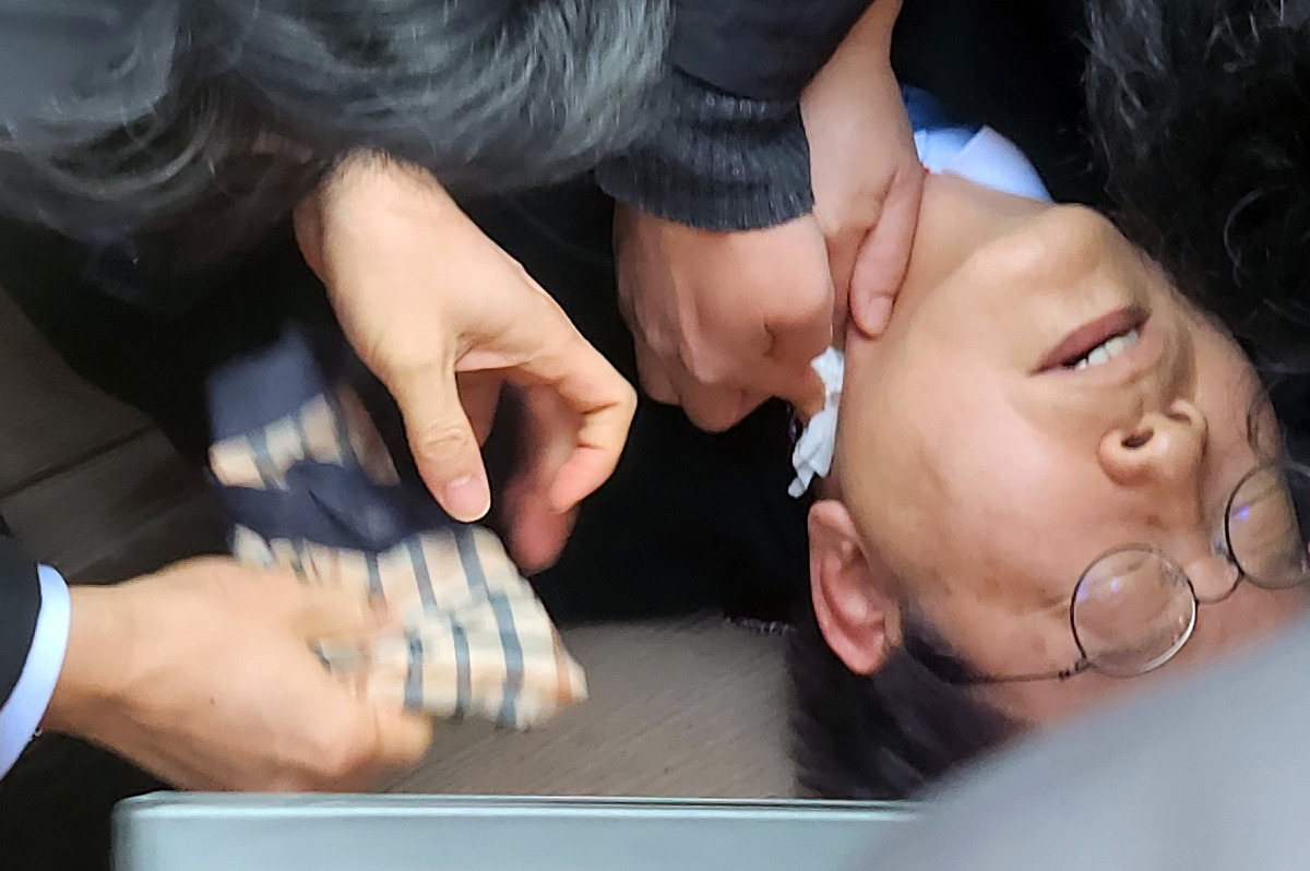 이 대표를 공격한 김 씨는 민주당 당직자와 경찰에 의해 현행범으로 체포됐고, 부산경찰청 특별수사본부로 인계됐죠. 이재명 대표는 부산대병원 외상센터에 오전 11시 15분쯤 도착해 응급처치를 한 뒤 경정맥 손상이 의심되고 추가 출혈이 우려되는 상황이라 수술을 하려 했으나, 이재명 대표의 가족 측의 요구로 헬기를 통해 서울로 이송, 서울대병원에서 약 2시간에 걸쳐 경정맥 재건 수술을 받았습니다. 권칠승 민주당 수석대변인에 따르면 "수술명은 혈전 제거를 포함한 혈관재건술"이라며 "내경정맥이 손상된 것이 확인됐고, 정맥에서 흘러나온 혈전이 생각보다 많아 관을 삽입한 수술이 시행됐다. 현재 중환자실에 입실해 회복 중"이라고 밝혔죠.