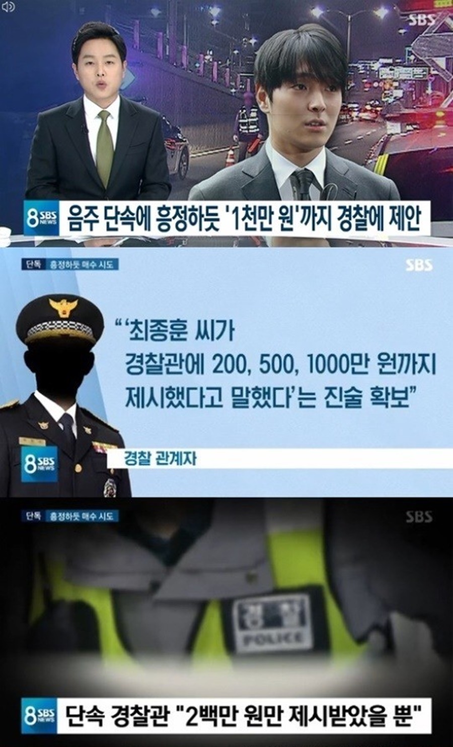 이 사실이 알려지자 소속사 FNC에서는 "얼굴이 많이 알려지지 않은 멤버라고 생각해 조용히 넘어가고자 소속사에 알리지 못하고 스스로 그릇된 판단을 하게 된 점에 대해 많은 후회와 반성을 하고 있다고 했다"면서도 경찰을 통해 보도를 막아달라는 청탁을 했다는 것은 사실이 아니라고 밝혔지만, 후에 돈으로 해당 상황을 무마시킨 정황을 암시하는 내용이 그들의 단톡방 대화 내용 속에서 발견되었죠. 또한 2019년 3월 21일에는 음주운전 단속 적발 당시 현장 경찰관에게 뇌물을 건네려 한 것으로 드러났으며, 해당 경찰관은 거부 의사를 밝힌 것으로 전해졌습니다. 게다가 음주 단속에 걸리자 차를 버리고 도주한 사실도 밝혀졌으며, 자신을 무직이라고 말했는데 이 때문에 상부 보고받지 못해 기사조차 안 나왔는 것이 밝혀졌죠.