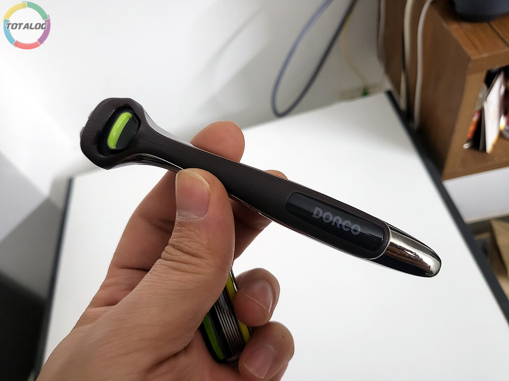 그 외에도 정밀 면도날이 장착되어 있어 코밑 수염과 구레나룻을 정리하기 편하고, Comb 기능을 추가해 피부 베임을 최소화했습니다. 그리고 Sand wave 패턴의 러버 핸들 디자인을 적용, 젖은 손으로 면도시에도 미끄럽지 않아 안전하게 사용이 가능하죠. 마지막으로 면도날 호환 시스템에 의해 6중날 외에도 도루코의 모든 면도날을 장착할 수 있습니다.