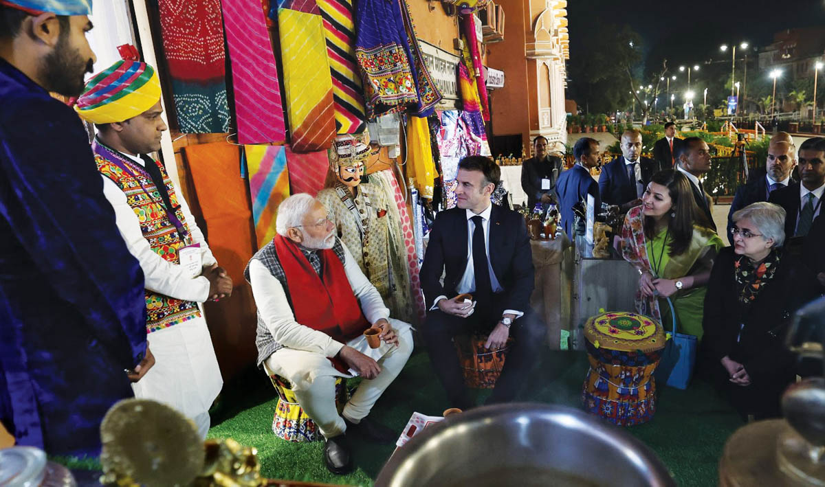 마크롱 대통령은 리퍼블릭 데이 하루 전인 25일 오후 인도의 자이푸르에 도착해 아메르 포트, 하와 마할, 잔타르 만타르 등을 방문하면서 인도 방문 일정을 시작했는데요. 모디 총리와 마크롱 대통령은 호텔로 이동하는 동안 수 많은 환영인파가 쏟아져 나왔고, 두 사람은 이에 화답하는 모습을 연출했습니다. 그리고 인도 최대 재벌인 타타그룹이 운영하는 럭셔리 호텔 브랜드 Taj의 호텔 람바그 팔라스 자이푸르에서 정상회담을 가진 뒤 비행기를 타고 수도 뉴델리로 이동했죠.