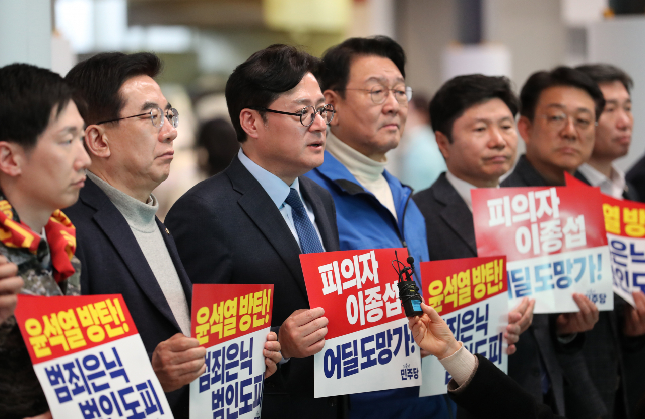 더불어민주당은 오늘 오후 5시30분경 인천국제공항 제2터미널에서 '윤석열 대통령실의 해병대 수사외압 범인도피 범죄은폐 저지 긴급행동'을 열었습니다. 홍익표 원내대표를 비롯해 박찬대·박주민·정일영·오기형·홍기원 의원 등이 참석했는데, 이종섭 전 장관의 출국을 막으려는 취지였죠. 홍 원내대표는 "예상과 다르게 윤석열 대통령이 이종섭 전 장관을 호주대사로 임명해서 해외로 도피시키겠다는 것은 강행하겠다고 한다"며 "이는 명백한 수사 방해고 주요 피의자를 국가기관이 공권력 동원해서 해외로 도피시키는 사건"이라고 긴급행동의 취지를 밝혔습니다.