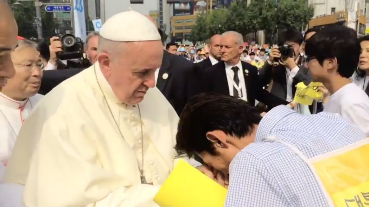 또한 두 차례에 걸쳐 세월호 참사 유가족을 만났고, 성모승천대축일 미사 때는 세월호 참사를 상징하는 노란 리본을 가슴에 달기도 했습니다. 출국하면서 세월호 참사 실종자의 이름을 일일이 언급한 메시지를 자신의 서명과 함께 실종자 가족에게 전하기도 한 프란치스코 교황은 그는 교황청으로 돌아가는 전세기에서 연 기자회견 중 "세월호 유족의 고통 앞에서 중립을 지킬 수 없었다"고도 말했죠.