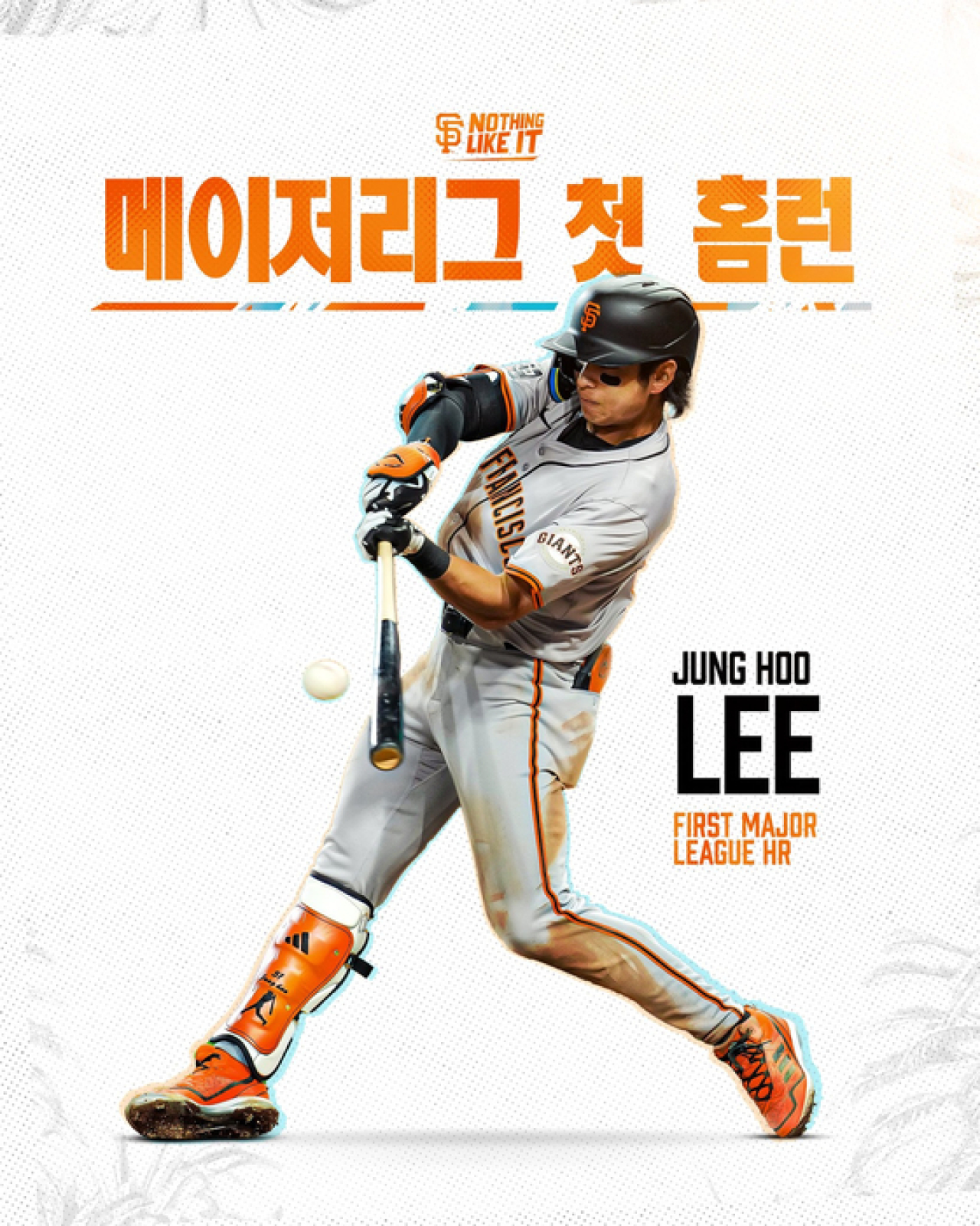 이정후는 개막 4연전에서 14타수 4안타 4볼넷 4타점을 기록하며 타율 .286, 출루율 .368, 장타율 .500, OPS .868에 1홈런 4타점으로 쾌조의 출발을 했습니다. 특히 데뷔 3경기 13타석 만에 때려낸 홈런은 왼손 투수, 그것도 좌타자 '킬러'로 불리는 사이드암스로의 공을 쳐낸 것이라 인상적이었습니다. 이정후의 컨택트 능력과 파워를 새삼 확인할 수 있던 홈런이었죠. 샌프란시스코 구단에서는 한글로 만든 홈런 기념 이미지를 만들기도 했습니다.