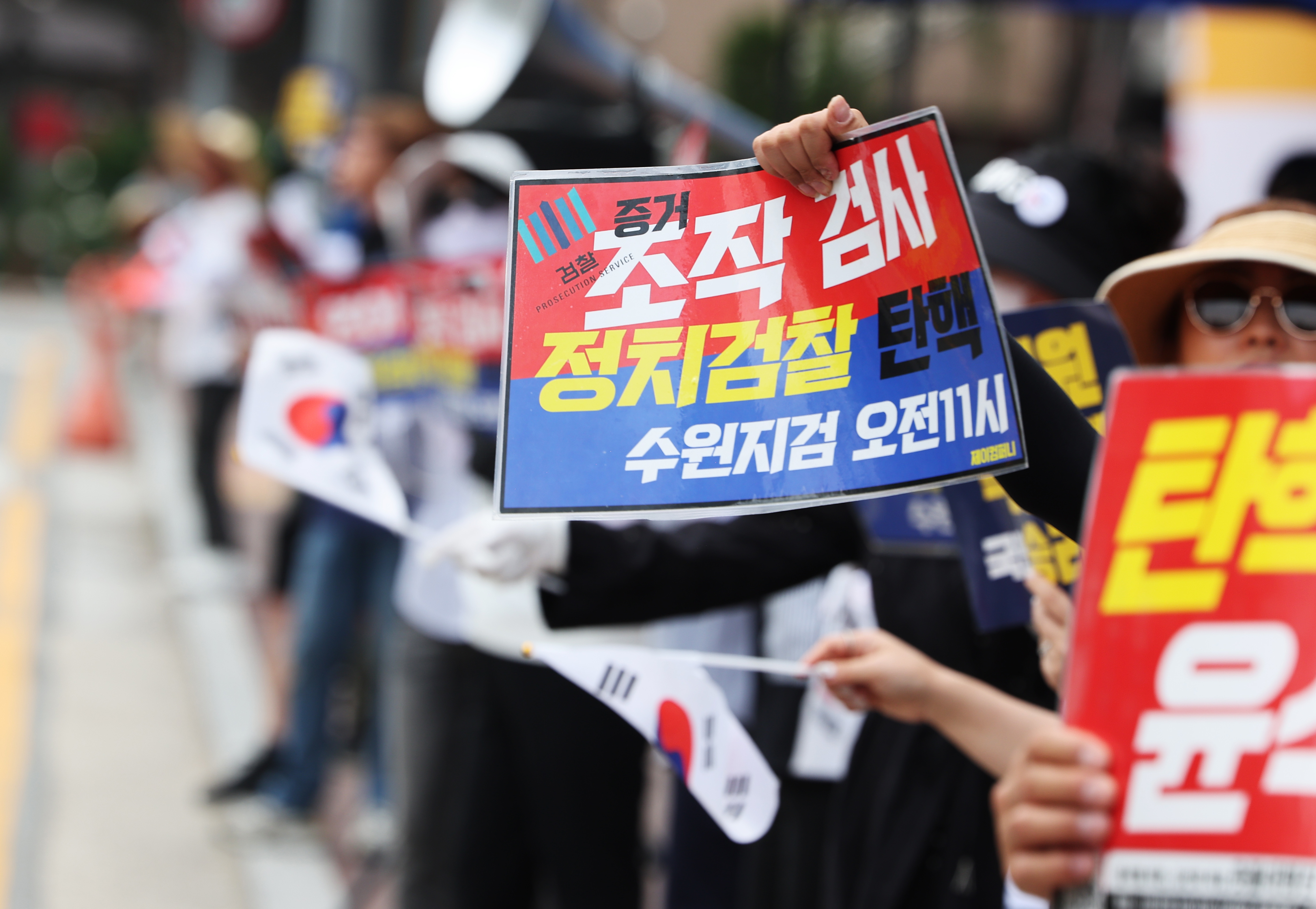 이날 재판이 있었던 수원지법 204호 법정은 선고 약 30분 전부터 피고인들 가족과 취재진, 일반 방청객들로 가득 찼습니다. 방청석 70여 석이 일찌감치 만석이 됐죠. 또한 수원지법 주변엔 이화영 전 부지사 규탄단체인 '애국순찰팀'과 지지단체 '정치 한잔' 등 회원 100여 명이 모여 맞불 집회를 열었습니다.
