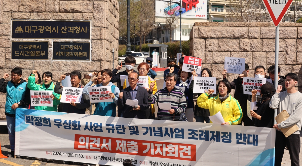 홍준표 시장은 "광주에는 김대중 대통령의 기념물이나 기념관들이 참 많은데 대구에는 박정희 대통령을 상징하는 게 아무것도 없다"는 논리로 이 박정희 기념 사업을 추진하려고 하고 있습니다. 대구시 관계자는 "동상 건립을 통해 박정희 전 대통령의 산업화 정신과 2·28자유정신이 공존하는 도시 이미지를 알리겠다"고 설명한 바 있는데요.