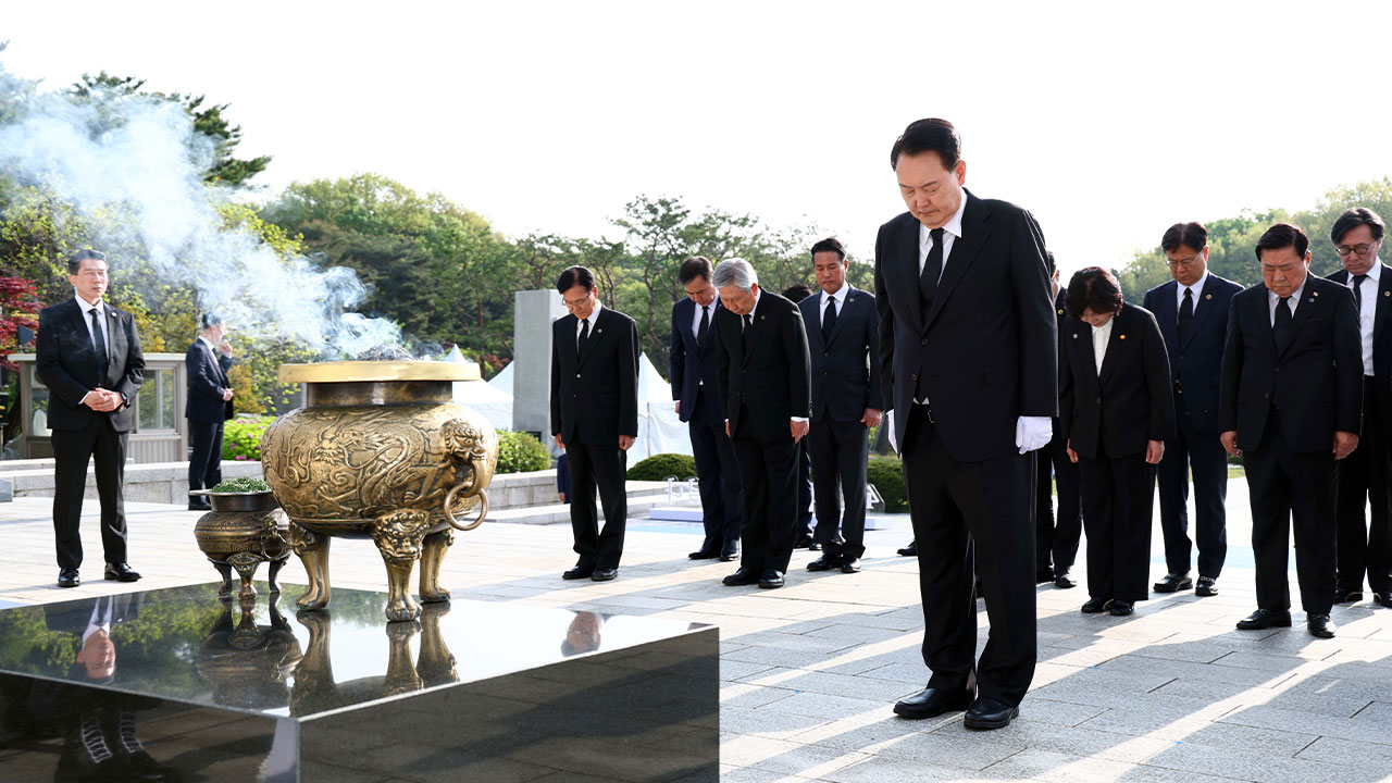 참석은 해야겠고, 총선에는 패배해서 가뜩이나 심기 불편한데 심지어 이재명으로도 모자라 조국과도 악수를 하며 얼굴을 맞대야 하는 상황을 해결하고자 도둑처럼 참배를 마치고 도망간 윤석열 대통령. 이건 뭐 전 여친이 자기 버리고 중요한 사업 파트너랑 결혼하게 됐는데 얼굴 도장까진 차마 자존심상 못 찍어도 방명록에 이름은 남겨둬야겠기에 축의금 내고 방명록 쓰고 후다닥 뷔페로 도망간 찌질남 마냥 정말 그 덩치 아까울 뿐입니다. 사람이 저렇게 옹졸해서야... 아무래도 지난 4·10 총선의 결과가 '민의'였음이 윤석열 대통령에겐 전혀 전해지지 않았나 봅니다.