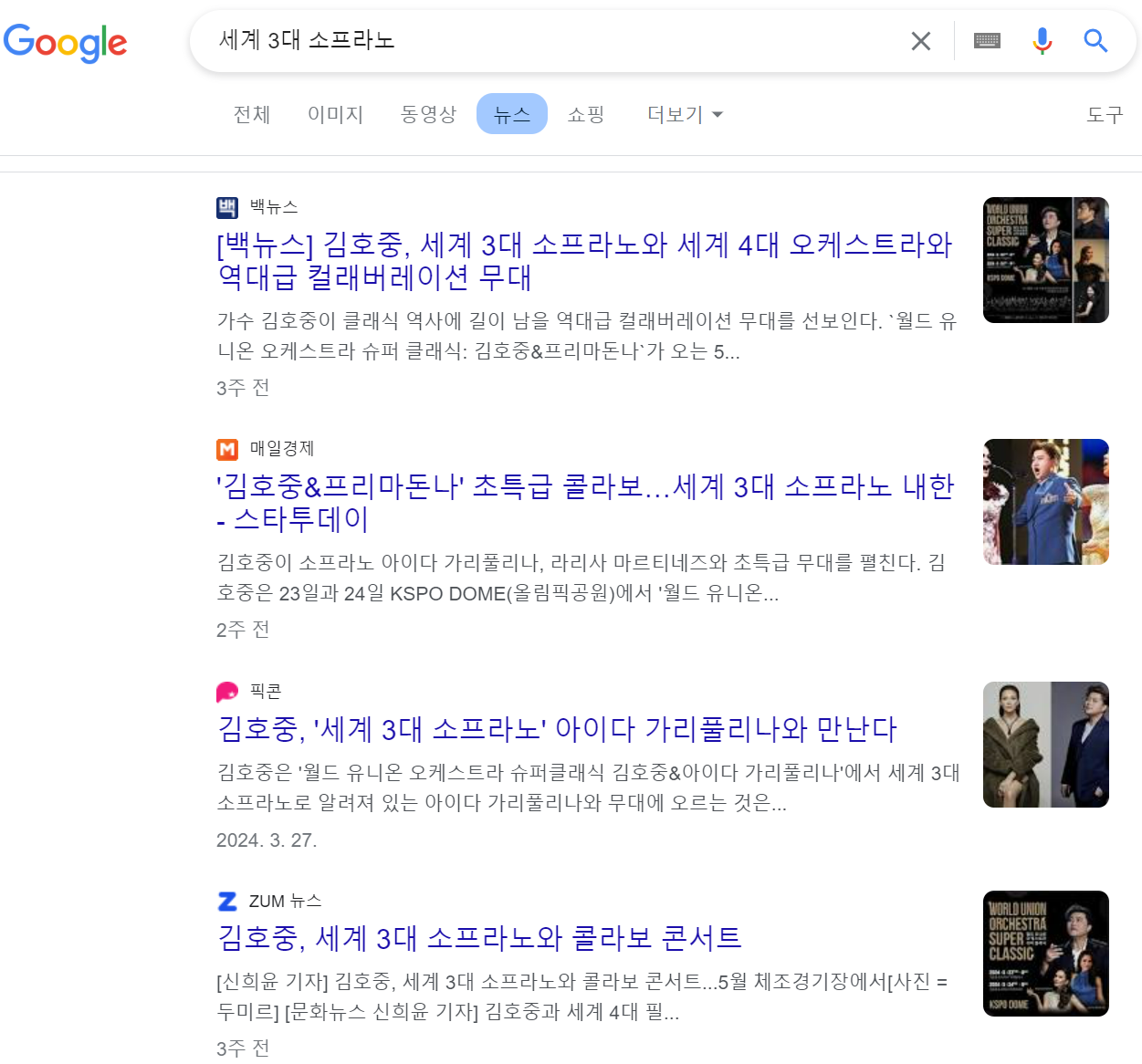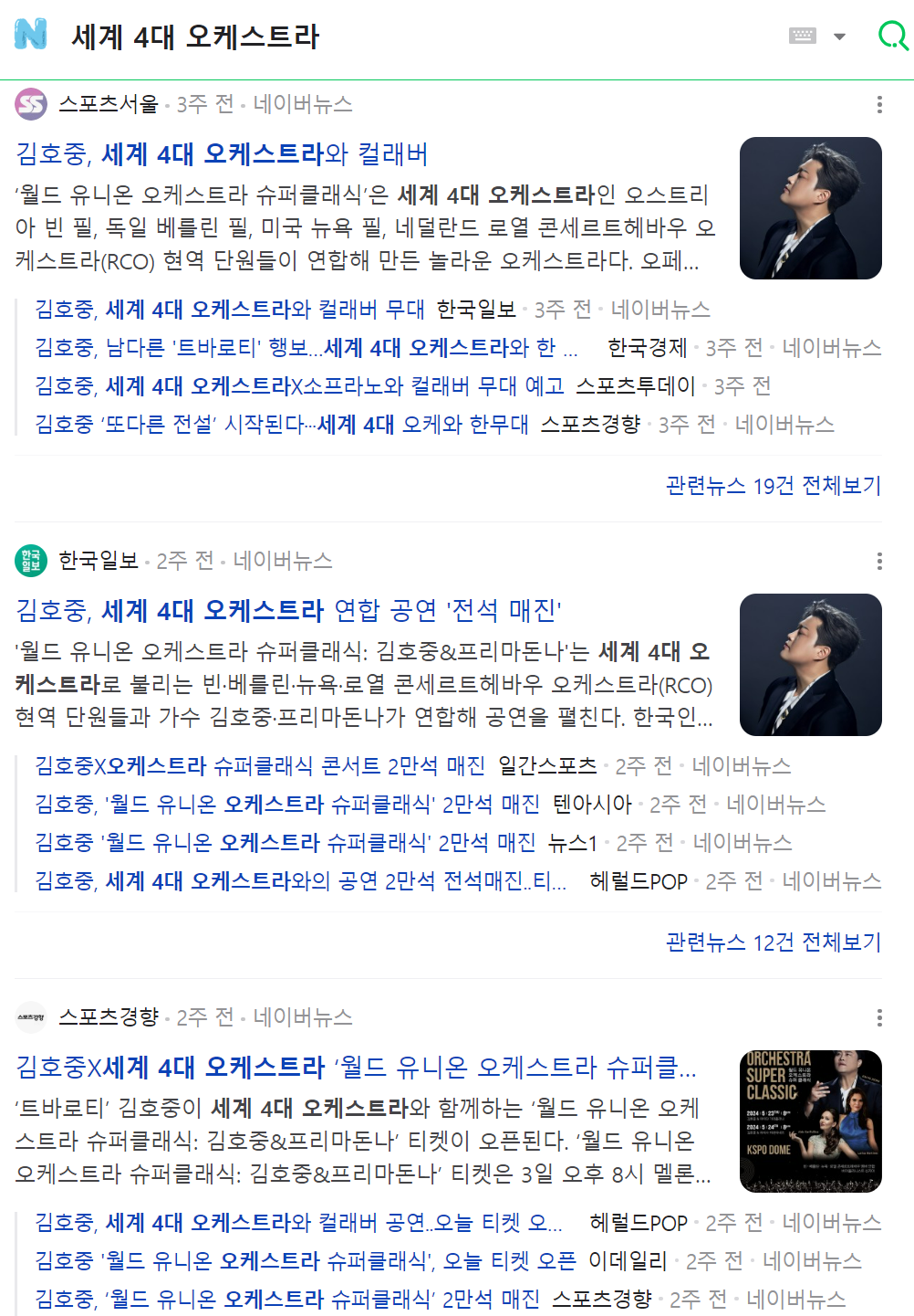 이날 '월드 유니온 오케스트라 슈퍼클래식'의 주최사였던 KBS는 아예 '최정상급 오케스트라 한 무대 선다'는 타이틀로 보도를 했습니다. 이승기 앵커는 "빈 필하모닉과 베를린 필, 뉴욕 필과 로열 콘세르트헤바우까지, 전 세계가 주목하는 최정상급 오케스트라들이 5월, 한국에서 만납니다. 이 역사적인 공동연주에 트바로티 김호중 씨도 협연자로 이름을 올렸는데요"라고 언급했죠. 이 보도 영상의 유튜브 제목은 '빈필·뉴욕필' 뭉친다…세계 4대 오케스트라 '최초의 콜라보'였습니다.