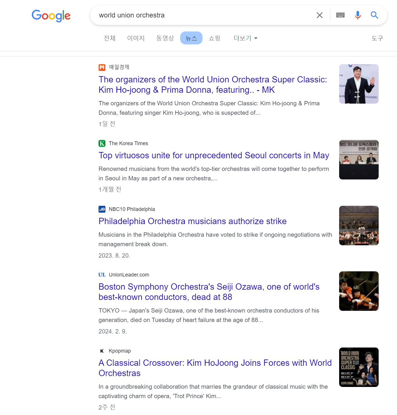 구글에서 검색한 World Union Orchestra. 한국에서의 이번 공연 관련 뉴스 및 이미지 외에는 그 어떤 것도 존재하지 않습니다. 즉, '월드 유니온 오케스트라'라는 것은 단지 주최 측에서 이번 공연을 위해 4개 오케스트라의 단원들을 개별적으로 섭외한 뒤 명명한 것으로, 이번 공연 전에는 존재하지 않았던 것이죠. 물론 구성원들은 4개 오케스트라의 단원들이 맞습니다. 하지만 이를 두고 '최정상급 오케스트라들이 한국에서 만난다' ' 전 세계가 주목하는 최정상급 오케스트라들이 한국에서 만난다' '역사적인 공동연주' '세계 4대 오케스트라가 한국에 모였다' 같은 표현은 어불성설이라는 것입니다. 즉 일종의 '유령악단' 내지는 '떴다방 오케스트라'인 셈. 지휘자인 로렌츠 아이히너(Lorenz C. Aichner) 역시 클래식계에서는 무명에 가까운 지휘자입니다.