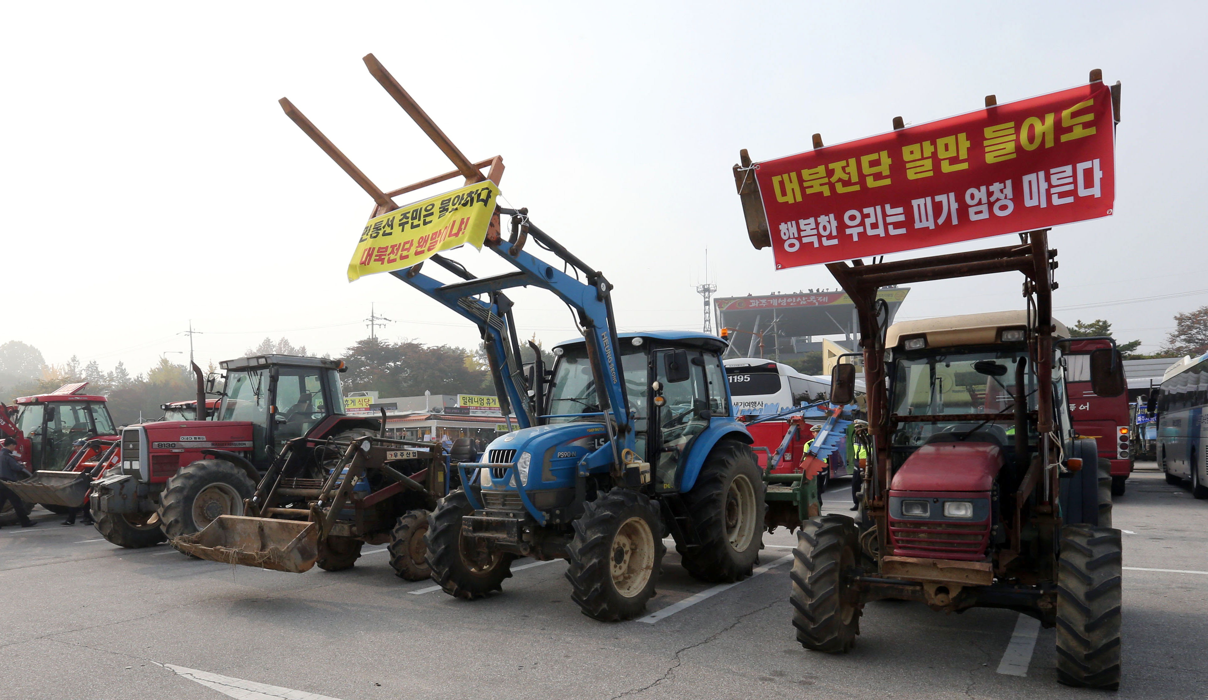 박상학의 대북전단 살포는 접경지 주민 및 좌파진보단체들과 끊임없이 마찰을 빚어왔습니다. 특히 2014년 10월 10일엔 연천에서 대북전단을 단 풍선을 향해 북한이 쏜 14.5mm 고사총 사격으로 인해 일부 탄환이 착탄되는 일도 있었죠. 그럼에도 불구하고 박상학은 풍향도 안 맞는 날인 10월 25일 임진각에서 삐라를 살포할 것이라고 예고했고, 성난 파주시민들이 박상학 무리들에게 먹을거리 하나 팔지 않았던 것은 물론이고 트랙터와 차량 등을 이용해 그들의 임진각 진입을 막는 것은 물론 몇 시간동안 대치하며 육탄전을 벌여 삐라를 뺏고 불태우기까지 했습니다.