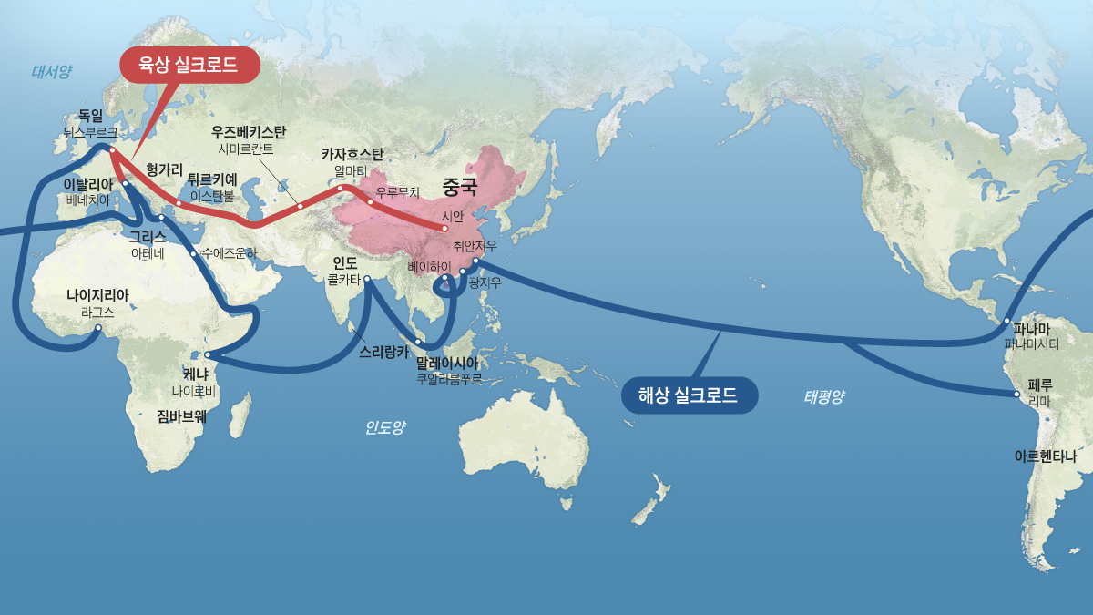 미·중은 이러한 경쟁 속에서 세계 각국을 자신의 편으로 서게 하기 위해 많은 노력을 기울여 왔습니다. 미국은 민주주의·자유경제 이념을 공유하는 유럽 등 서방 국가 및 이스라엘, 그리고 동아이사의 한국·일본·대만 등과 함께 중국을 고립시키고자 애써왔고, 중국은 일대일로(一带一路)로 대표되는 육해공으로 잇는 인프라·무역·금융·문화 교류의 경제벨트를 구축하면서 중앙아시아 및 파키스탄, 스리랑카 등 남아시아 국가, 그리고 아프리카 국가들까지 제3세계 국가들을 끌어들이고 있죠.