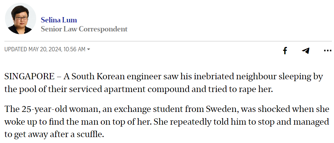 그렇다면 한국인은 싱가포르에서 태형을 선고받은 사람이 없을까요? 지난 5월 13일, 싱가포르에서는 한국인 조 모씨에게 성폭행 혐의로 징역 8년이 선고됐습니다. 애시당초 조 모씨에 대해서는 현대자동차 그룹 이노베이션 센터에서 근무 중인 엔지니어로 알려졌었지만, 현대자동차 측에서는 "해당 사건을 저지른 사람은 그룹 계열사 직원이 아닌 2차 협력업체 직원으로 본사에서 파악할 수 있는 부분은 없다"고 선을 그은 바 있죠.