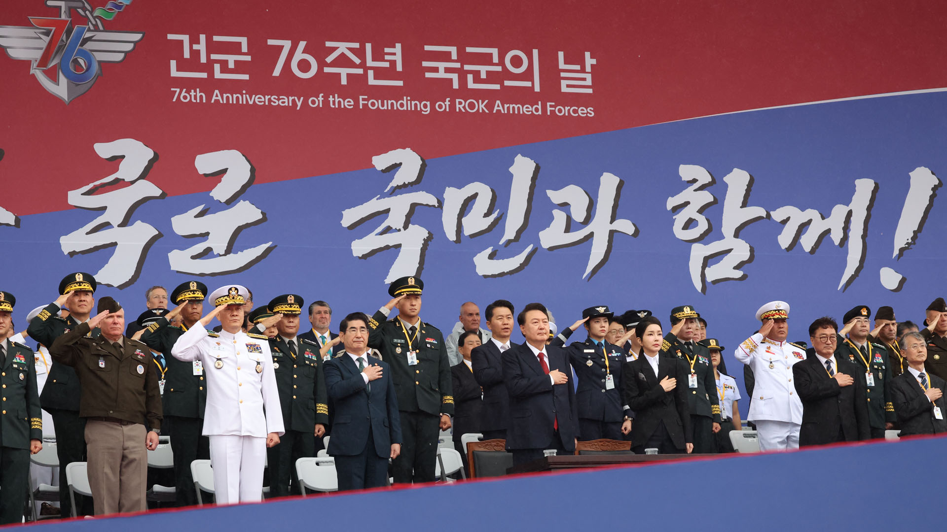 오늘 오전 경기 성남시 서울공항에서는 건군 제76주년 국군의 날 기념식이 거행됐습니다. 김건희 여사와 함께 참석한 윤석열 대통령은 "북한이 핵무기 사용을 기도하는 날이 정권 종말의 날이 될 것"이라면서 "북한 정권은 지금이라도 핵무기가 자신을 지켜준다는 망상에서 벗어나야 할 것"이라고 촉구하는 한편 한미동맹과 이에 기반한 '한미일 안보협력'을 강화해나갈 뜻을 재차 밝혔습니다.