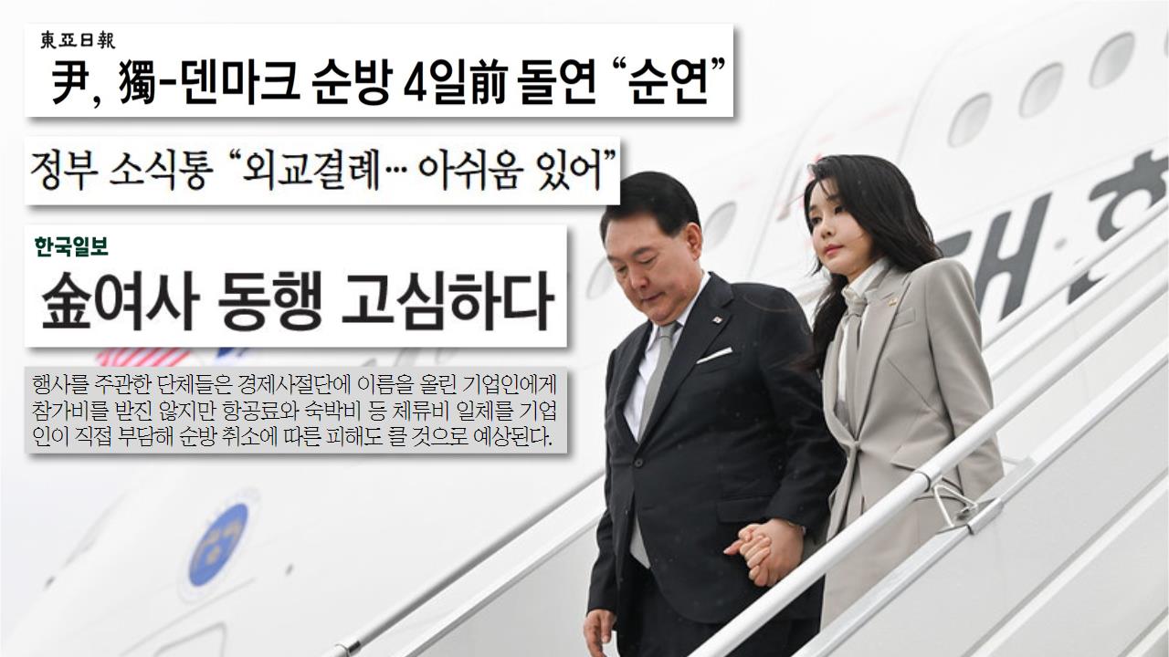 지난 2월 13일, 윤석열 대통령은 독일·덴마크 순방을 닷새 앞두고 돌연 연기했습니다. 이는 매우 이례적인 상황임에도 대통령실에서는 그저 여러 요인을 검토했다고 밝혔을 뿐이었죠. 당장 박근혜 정부 시절 메르스 사태로 인해 출국을 불과 몇 일 앞두고 해외 순방 일정이 연기됐을 땐 홍보수석비서관이 직접 설명을 했던 전례가 있습니다.