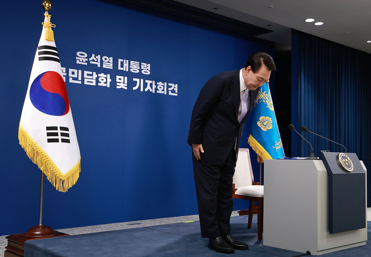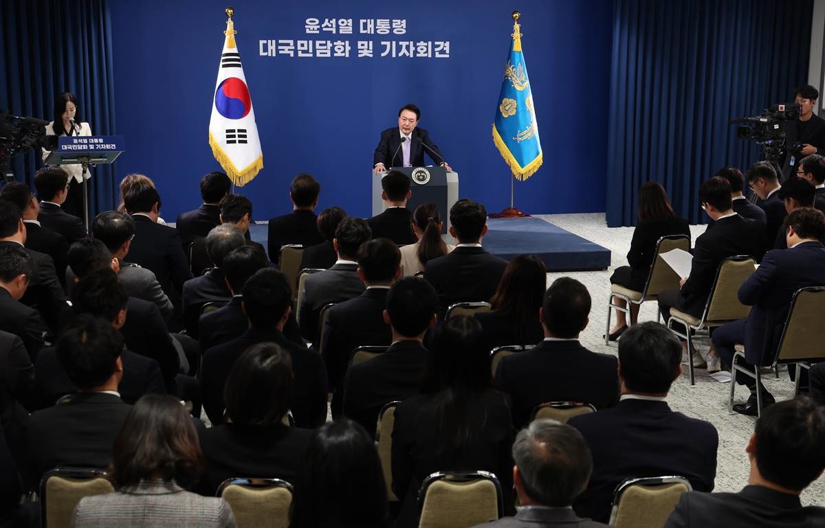 윤석열 대통령은 당초 이달 말 진행될 예정이었던 기자회견을 임기 반환점을 사흘 앞둔 7일로 급하게 당겨 진행했습니다. 영부인 김건희 여사의 공천 개입 의혹과 핵심 관련자인 명태균 씨 녹취 등이 공개되면서 해명을 요구하는 목소리가 커졌기 때문이죠. 당초 대통령실 관계자들은 "윤 대통령이 대국민담화를 통해 지난 2년 반의 성과를 돌아보고 앞으로의 2년 반 국정방향을 제시한다"면서 "뒤이은 기자회견은 기자들의 질문이 끝날 때까지 다 받아준다는 방침"이라며 '끝장토론'을 예고하기도 했습니다.