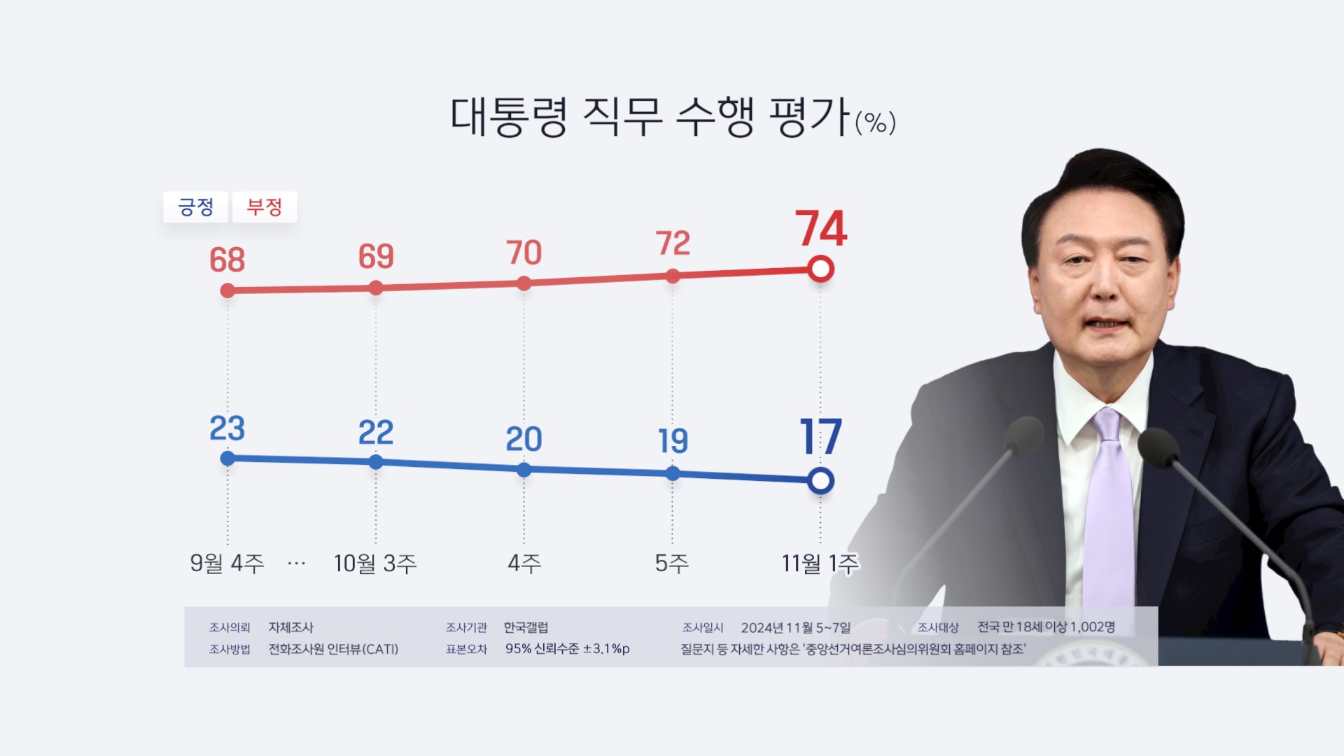 어제(지난 7일) 있었던 윤석열 대통령의 대국민담화 및 기자회견 이후 실망감과 부정적 평가가 쏟아지고 있는 가운데 임기 반환점을 앞둔 윤석열 대통령의 국정 지지율이 취임 후 최저치를 경신하며 2주 연속 10%대를 기록했습니다.