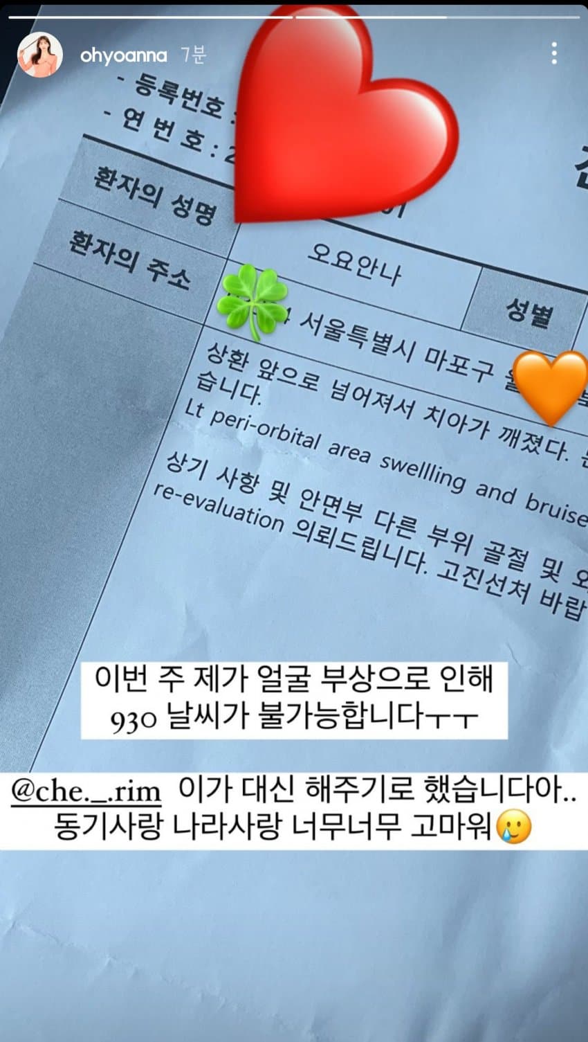故 오요안나의 인스타그램은 9월 12일을 기점으로 멈춰있었습니다. 그녀의 팬들은 "얼굴 부상 소식에 놀랍고 걱정했다. 충분한 회복하시길 바란다" "잘 지내고 계시죠? 치료를 받고 계신지 정말 오랜 시간동안 안나 캐스터 님이 예보에 나오시지 않고, 또 근황을 알 수도 없어서 이렇게 댓글로나마 남겨본다" 등 안부를 묻는 댓글들만 남아있었죠.