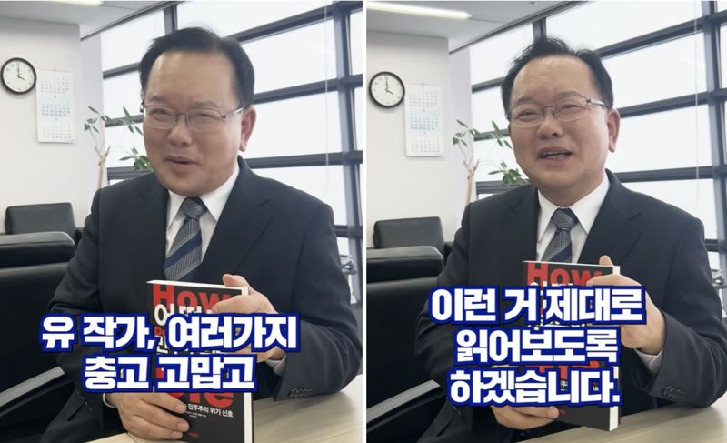 김부겸 전 총리는 자신의 유튜브 채널에 올린 쇼츠에 유시민 작가의 영상을 보는 모습을 담으며 "유시민 선생, 충고 고맙다"라고 말했습니다. 이어 김부겸 전 총리는 "책 많이 읽으라는 충고 받아들인다. 요새 이런 책을 많이 나온다"며 '어떻게 민주주의는 무너지는가'를 펼쳐보였죠.