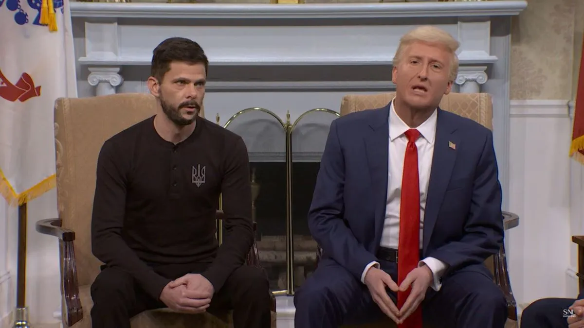 밴스 부통령 역의 배우는 젤렌스키 대통령 역의 복장을 지적하며 "마치 '스타트렉' 캐릭터처럼 보인다"고 비꼬았습니다. 또한 트럼프 역 배우는 젤렌스키 역 배우에게 "하고 싶은 말이 있냐"며 "미스터 푸틴(러시아 대통령)에게 당신이 그를 얼마나 사랑하는지 그리고 당신이 러시아를 침공해 미안하다고 말하는 게 어떠냐"고 말했죠. 이어 "당신의 아내와의 하룻밤을 그에게 제안하는 것도 좋겠다"고 말하며 트럼프 대통령이 젤렌스키 대통령에게 무리한 요구를 하고 있다는 것을 비판했습니다.