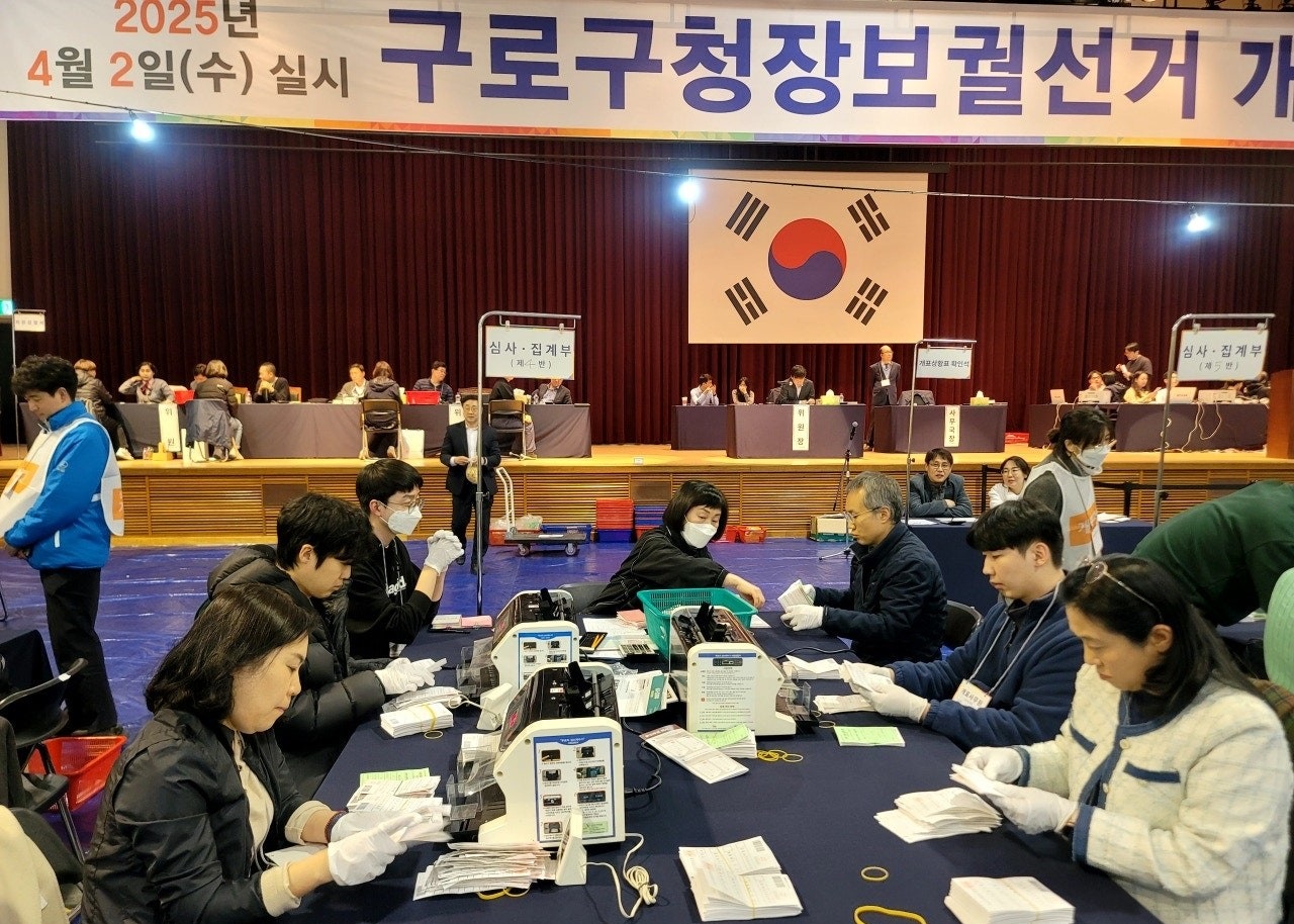 구로구청장 선거결과도 더불어민주당 장인홍 후보가 56.03%, 자유통일당 이강산 후보 32.03%, 조국혁신당 서상범 후보 7.36, 진보당 최재희 후보 4.56%였습니다. 구로구청장 선거는 170억 원 상당의 회사 주식 백지신탁을 피하기 위해 국민의힘 소속 문헌일 전 구청장이 임기 중 사퇴한 곳으로, 보선 원인을 제공한 국민의힘은 후보를 내지 않았죠.
