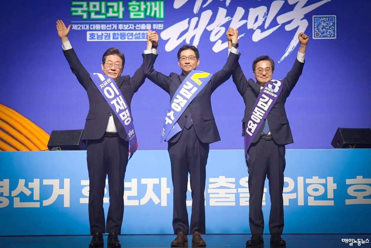 민주당은 27일 오후 경기도 고양 킨텍스에서 열린 수도권 순회경선에서 권리당원·대의원·재외국민 투표 50%와 국민 여론조사 결과 50%를 합산한 최종 경선 결과를 발표했습니다. 수도권·강원·제주 권리당원과 대의원 투표에서는 이 후보가 91.54%를 득표하며 지역별 경선 중 가장 높은 득표율을 얻어냈죠. 이재명 후보로 민주당의 대선 후보가 확정됐음이 발표되는 순간 장내는 함성으로 뒤덮였습니다.