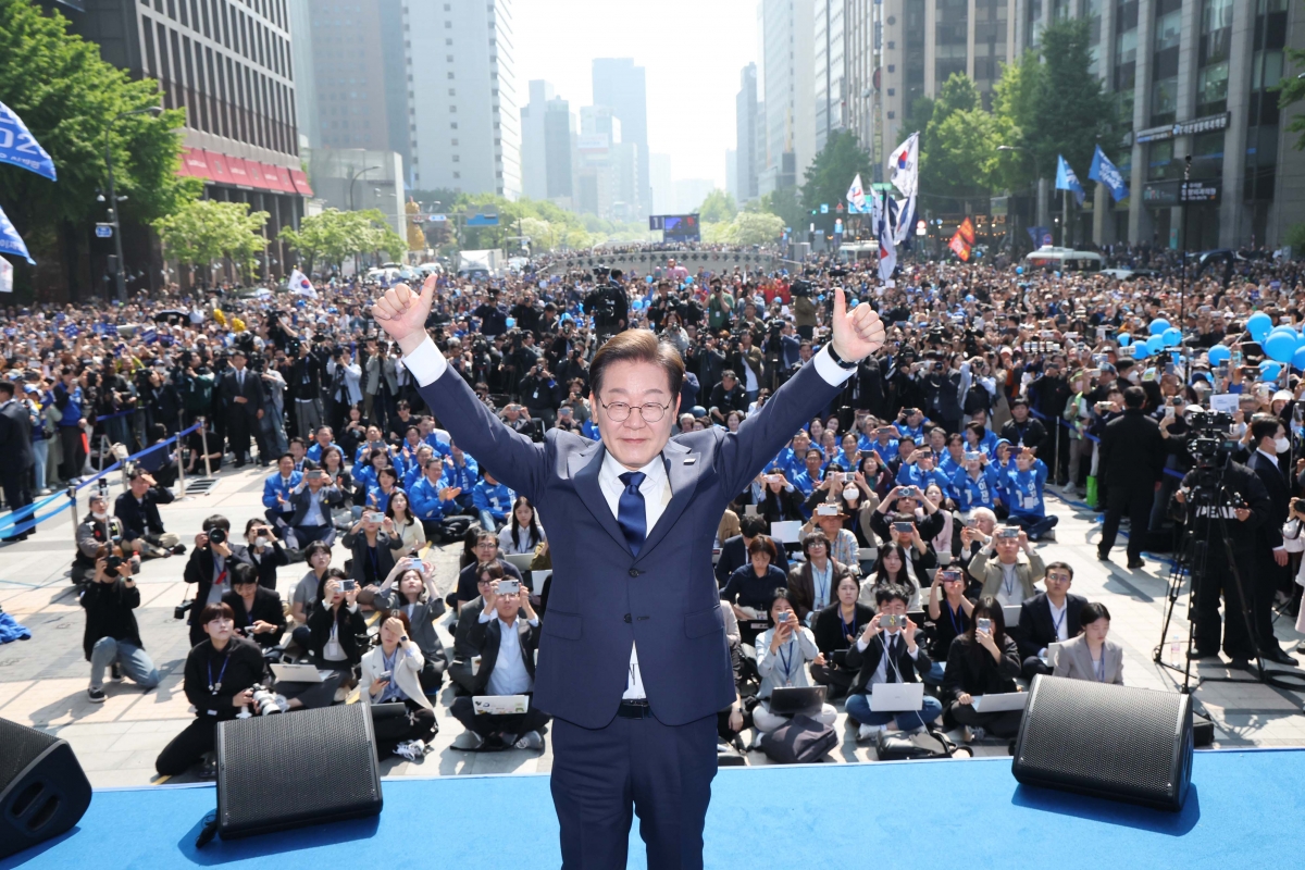 12일 서울 중구 광화문 청계광장에서 '빛의 혁명'이라는 이름으로 열린 선대위 출정식에서 더불어민주당은 이번 대선을 '헌정 수호 세력'와 '헌정 파괴 집단'의 대결이라고 규정하며 "내란 종식을 위해 결코 패배해서는 안 된다"고 강조했습니다. 방탄복 위에 정장을 입고 현장에 도착한 이재명 후보는 민주당의 고유색인 '청색'과 보수 정당의 '적색'이 함께 어우러진 운동화, 선거운동복으로 갈아 입으며 통합과 승리의 의지를 다졌습니다.
