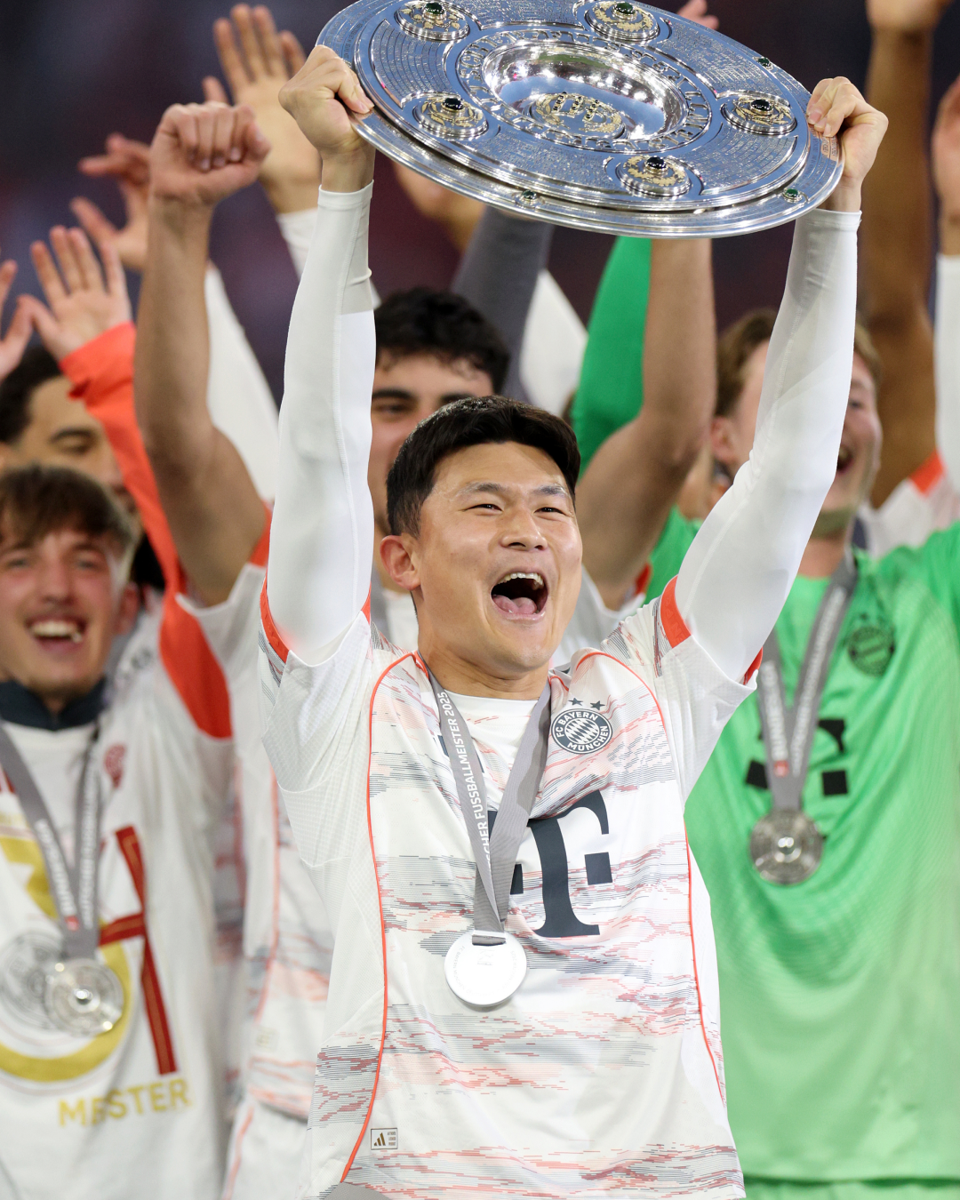한편 11일(한국시각) 독일 뮌헨의 알리안츠 아레나에서 열린 보루시아 묀헨글라트바흐의 2024~2025시즌 분데스리가 33라운드 경기에서 2대0으로 승리 후 열린 트로피 세리머니에 김민재 역시 모습을 드러냈습니다. 바이에른은 이미 지난 32라운드 무승부 이후 2위 레버쿠젠이 32라운드에서 무승부를 기록하며 일찌감치 우승을 확정한 상태였죠. 하지만 올 시즌 부상으로 인해 조금 일찍 시즌을 마감한 김민재도 빠지지 않았습니다.