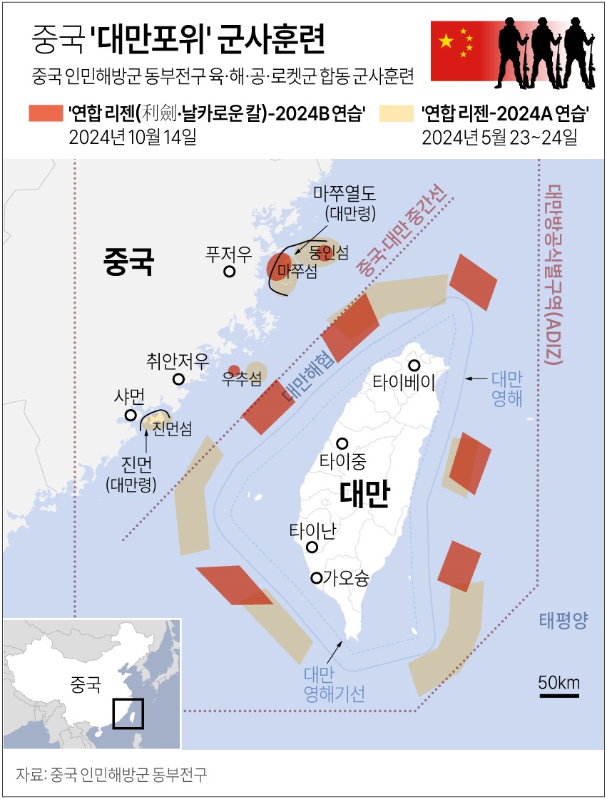 중국군 '실전 같은 대만 점령 훈련'이 언제 '훈련 아닌 실전' 될지 몰라